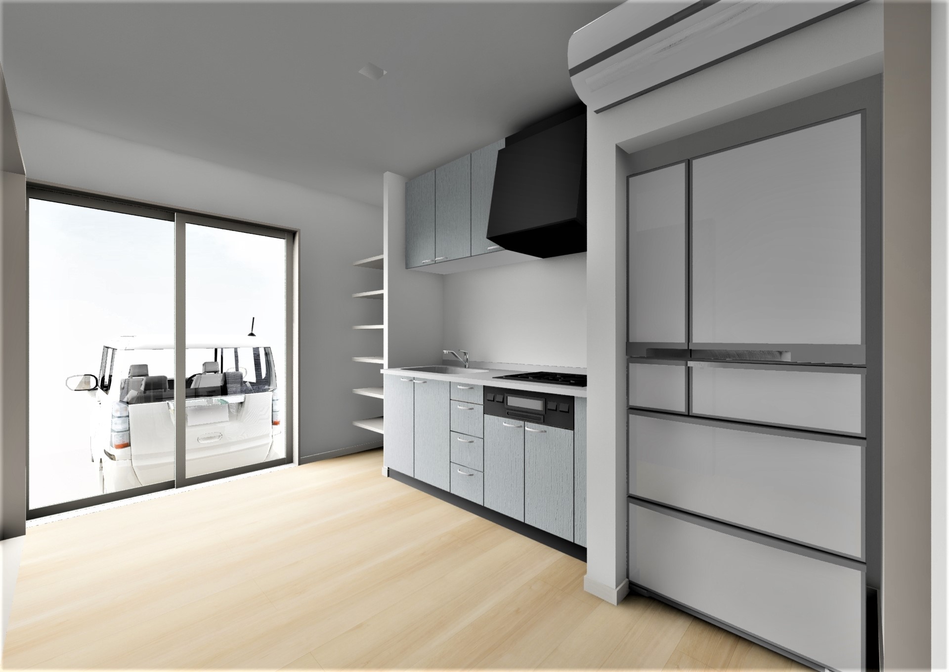 コンパクトでOKというご要望で、幅1.8mのミニキッチンを採用。