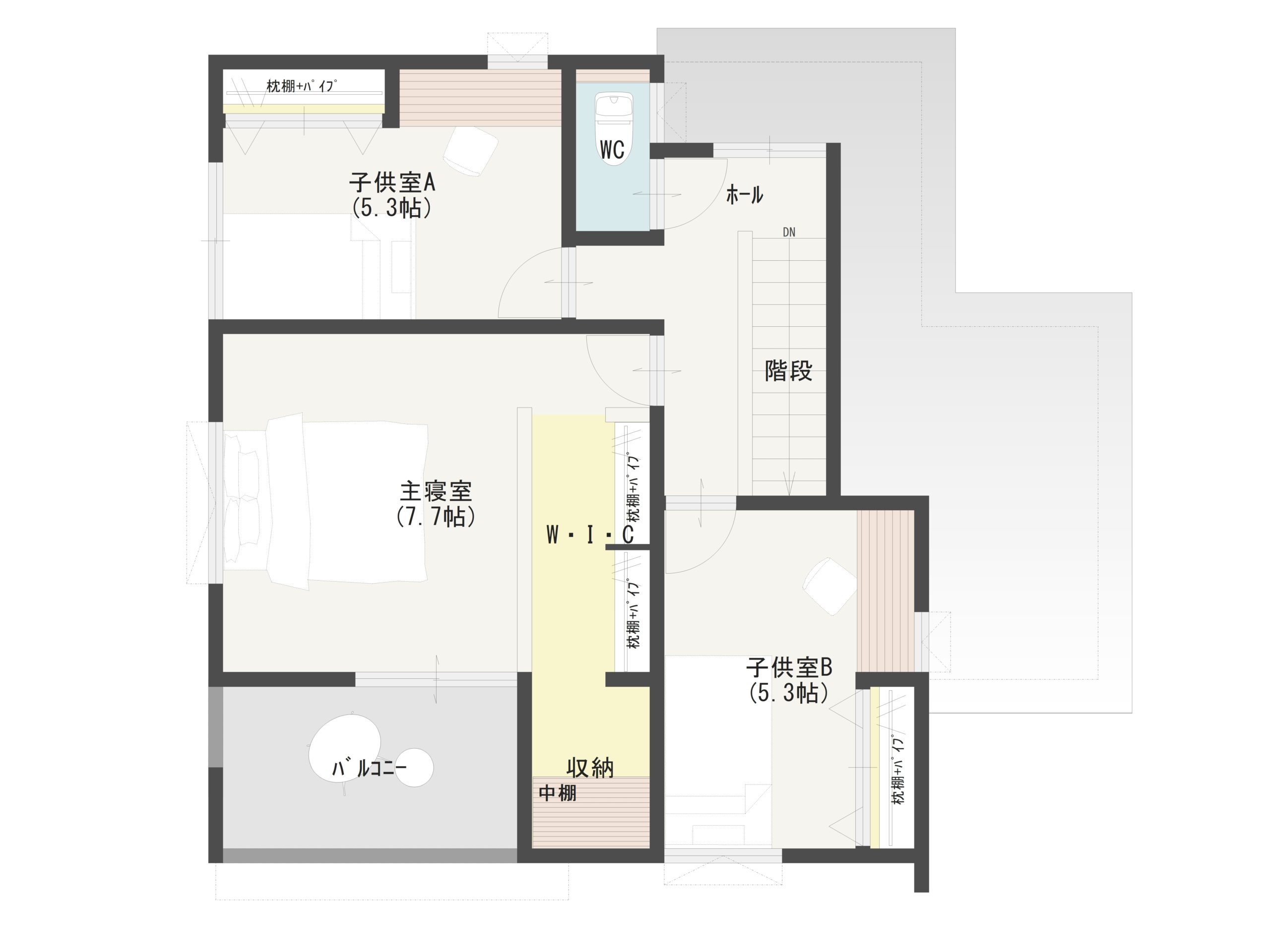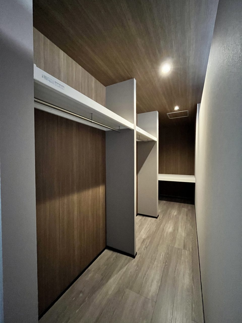 ウォークインクローゼットの奥には季節ものやお布団を仕舞える納戸としてのスペースも確保。