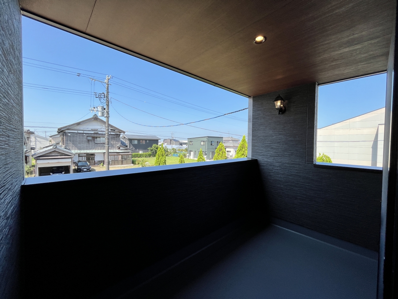 広めのバルコニーは全て屋根がかかり、夕涼みやちょっとした時間を過ごすのに最適。