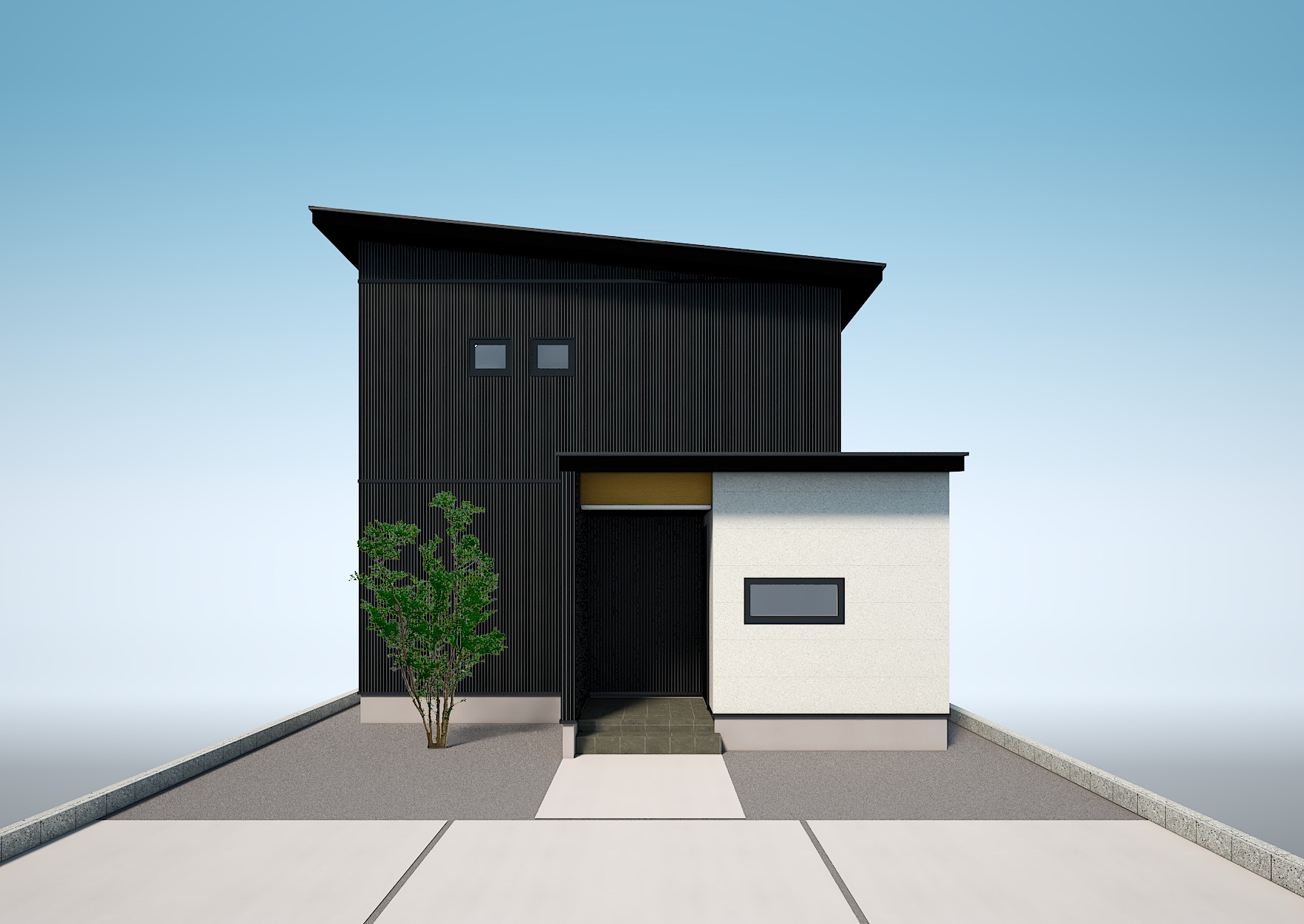 金属サイディングでスタイリッシュな外観が特徴的なお住まいが完成。