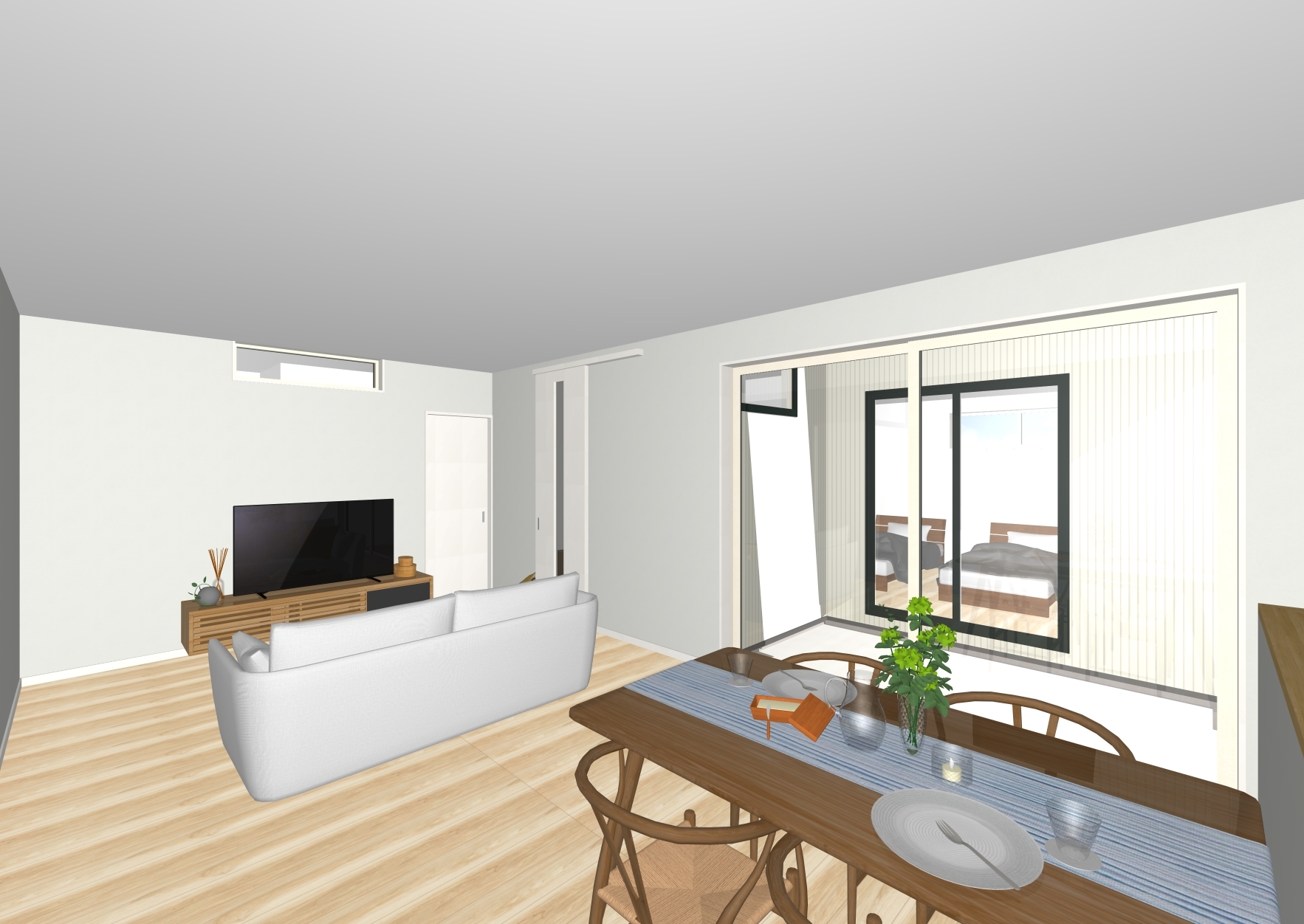 各部屋には固定収納を設けずファミリークロークで服を集約するスタイル、