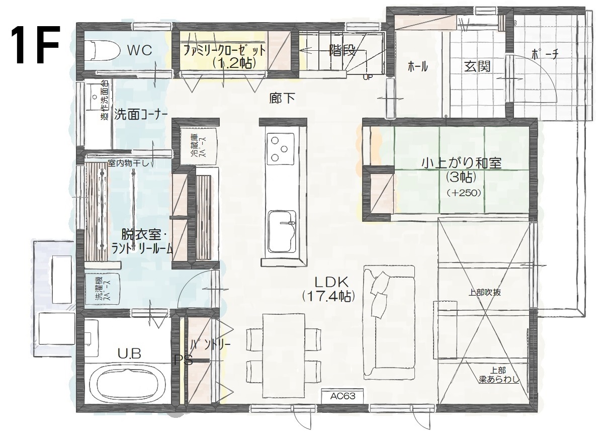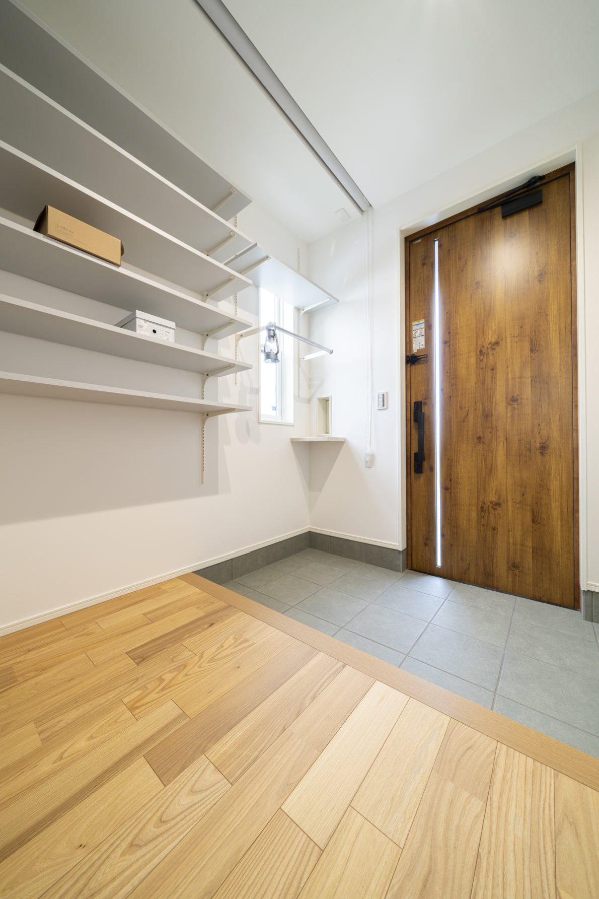 1階に設置した「ファミリークローゼット」で家族みんなの服を一気に収納!家事時短でスピーディな暮らしやすさ抜群のお住まいです