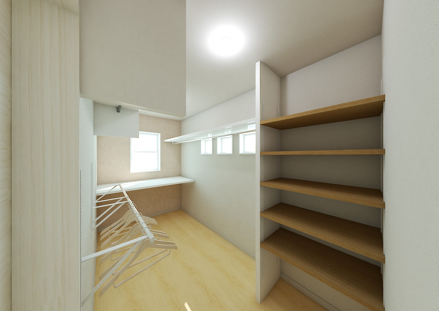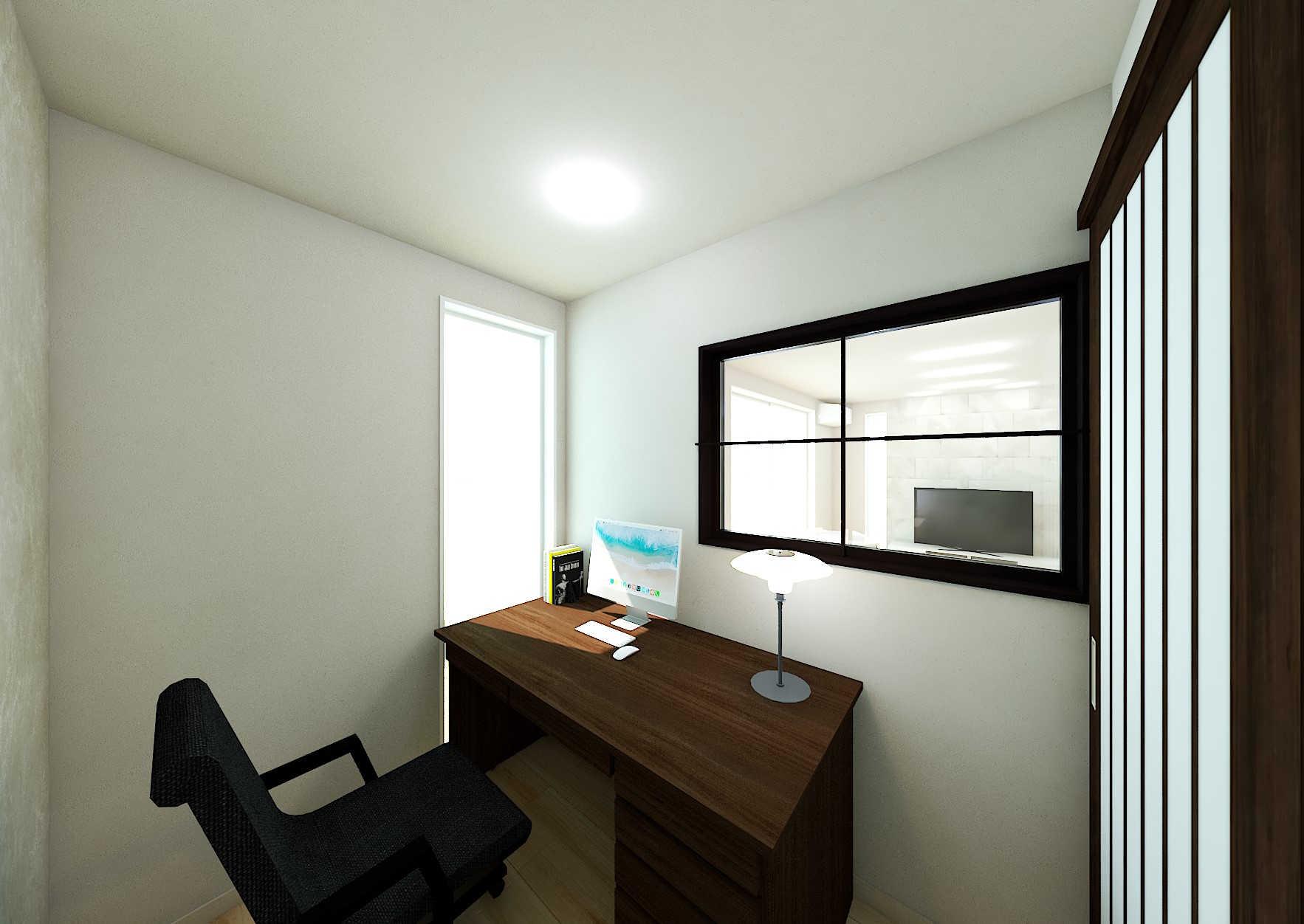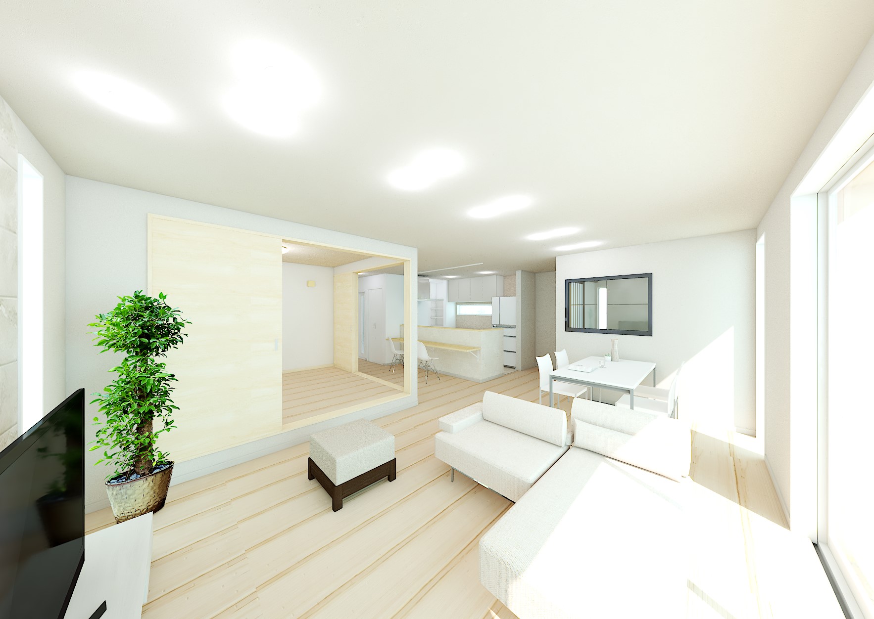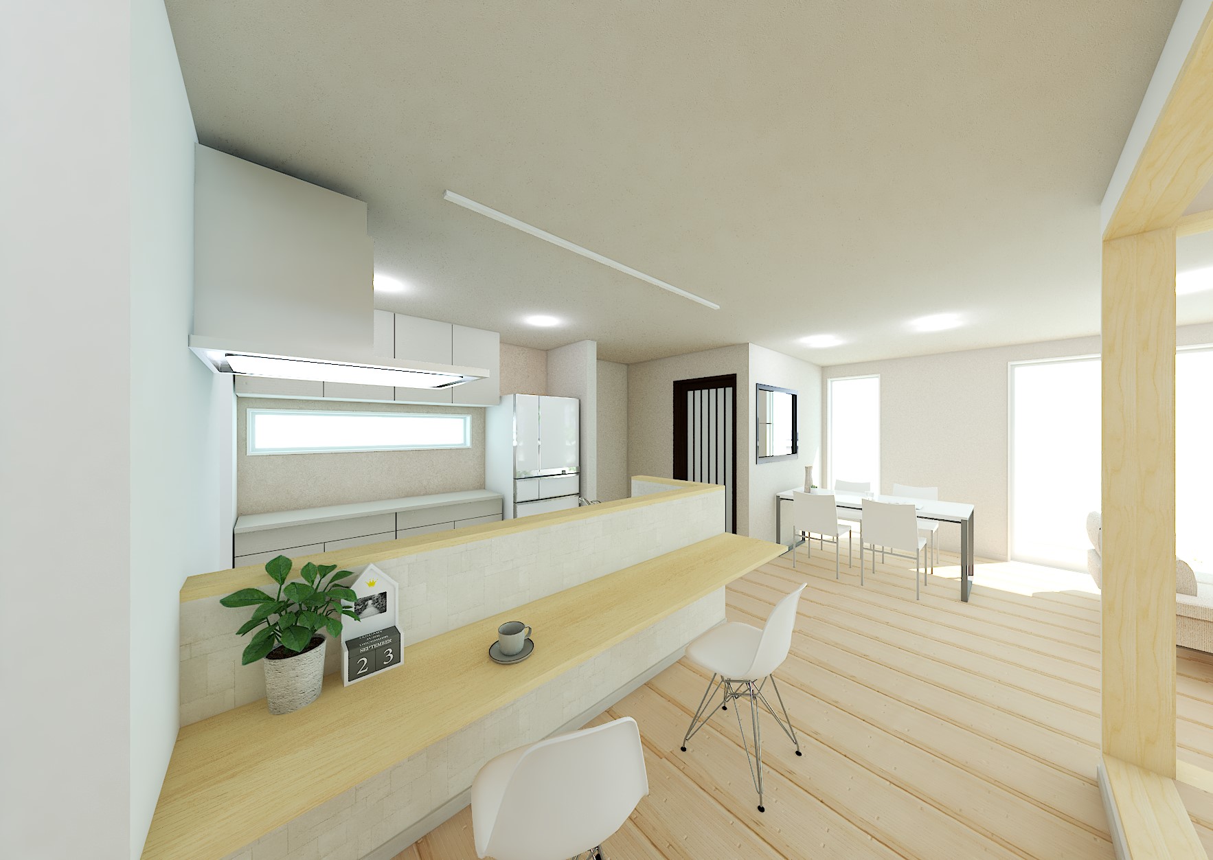 キッチンからLDK+小上がりスペースを見渡すことができる為、家事をしながらの子育ても安心です。また、LDK内の書斎からはご家族の様子が伺え、ちょうど良い距離感でお仕事をすることができます。