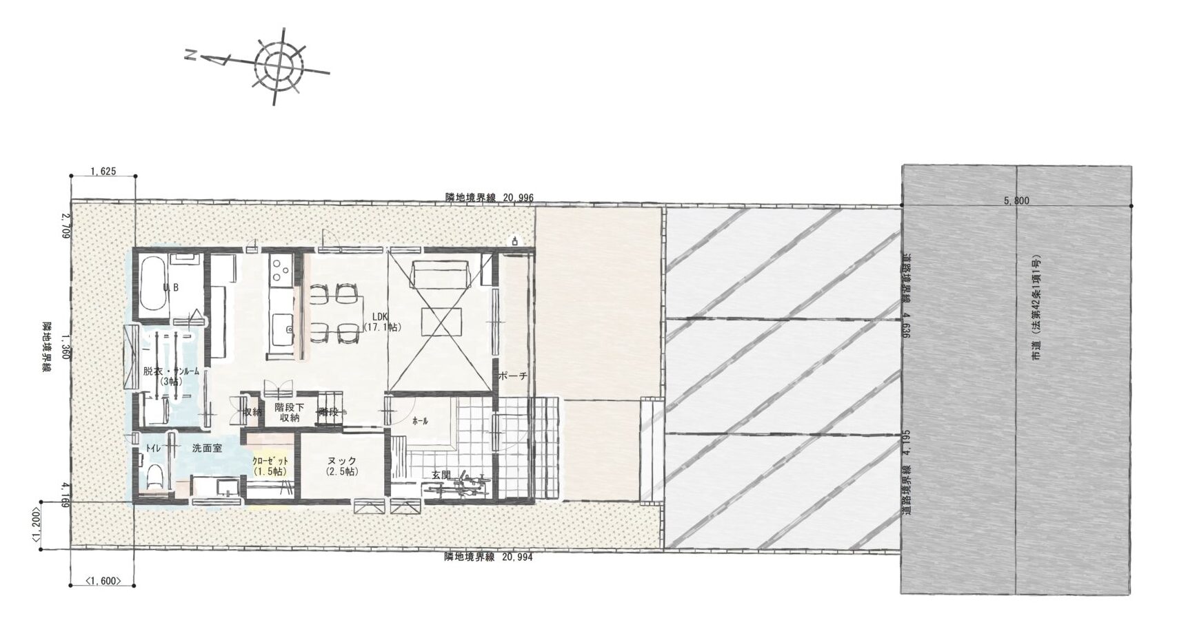 LDKの隣には、2.5帖のヌックスペースを設置!