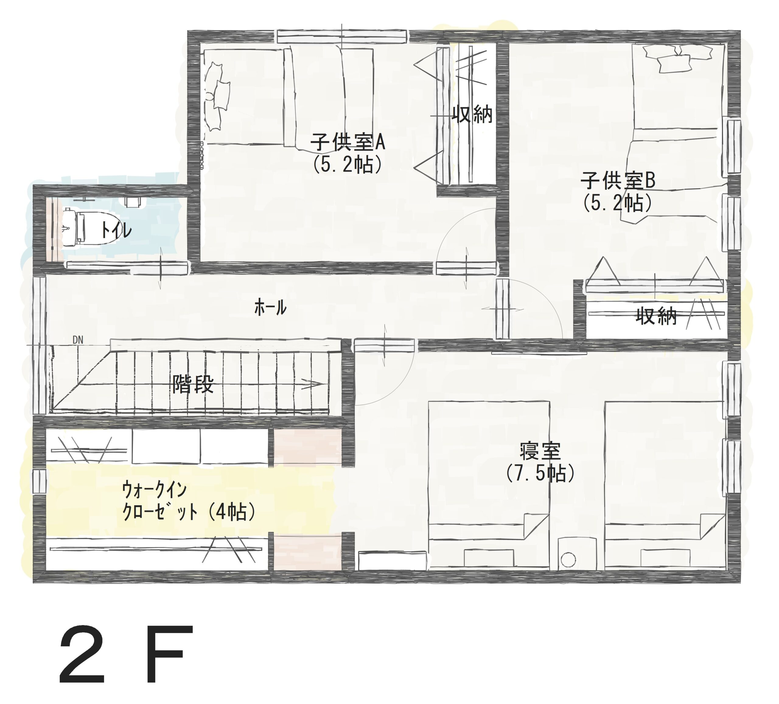 玄関には大容量の収納、1階にはクローク、2階にはウォークインクローゼットも完備し、家族全員の持ち物がすっきり収まります。