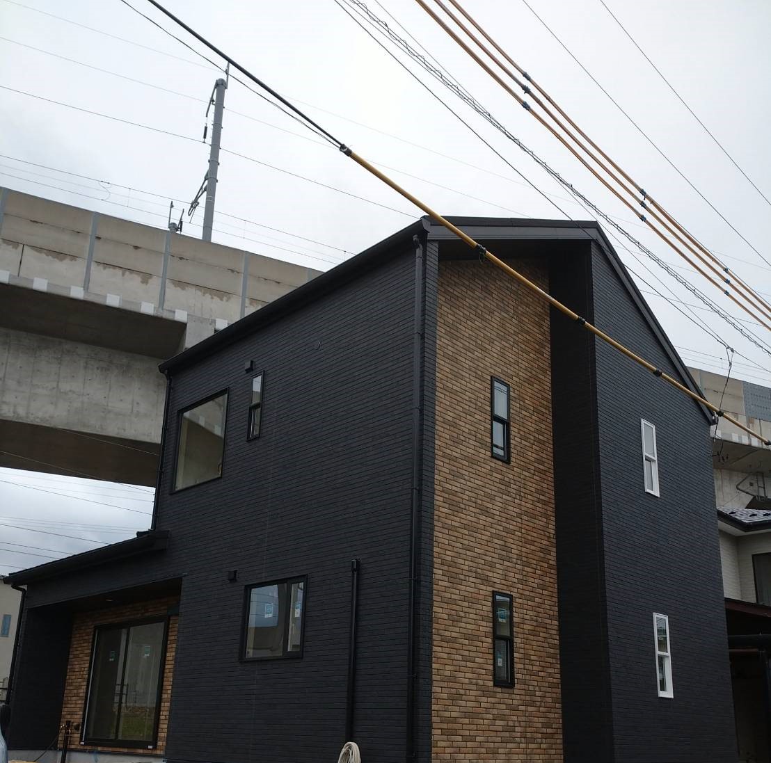 三角屋根の家らしい形に、凹凸でアクセントとした外観。