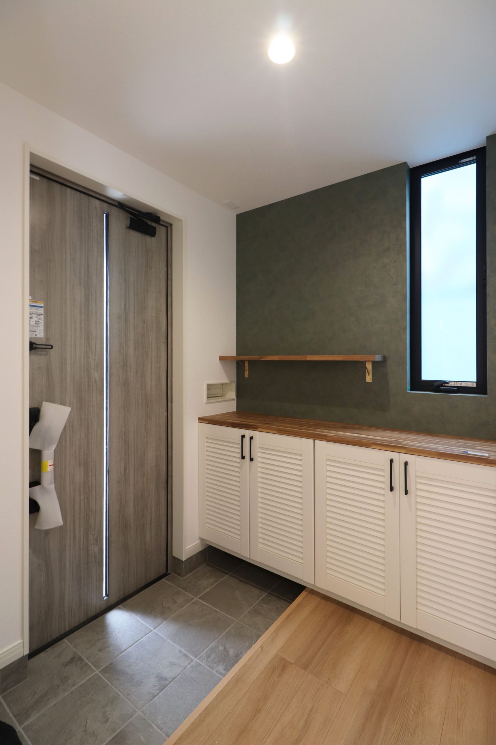 部屋の一部にグリーンのクロスを使うことでボタニカルな雰囲気を演出しています。