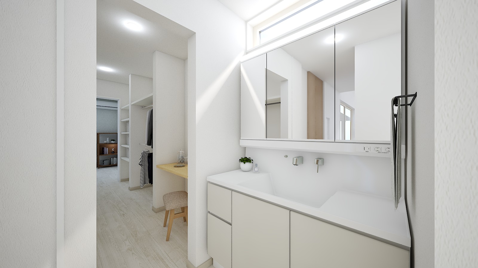さらに、キッチンからランドリー、プライベートスペースまで一直線でつながるお洗濯動線は、毎日の家事を快適にサポート。