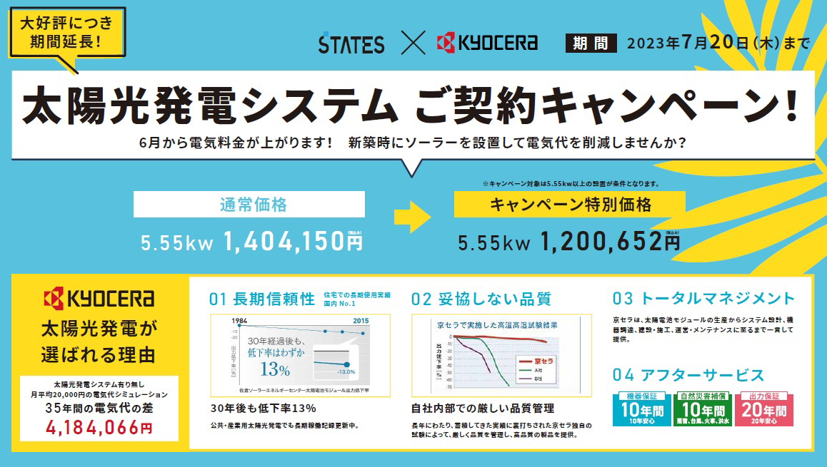 加えてステーツ提携太陽光メーカーの太陽光パネルが特価で設置できるキャンペーンです!