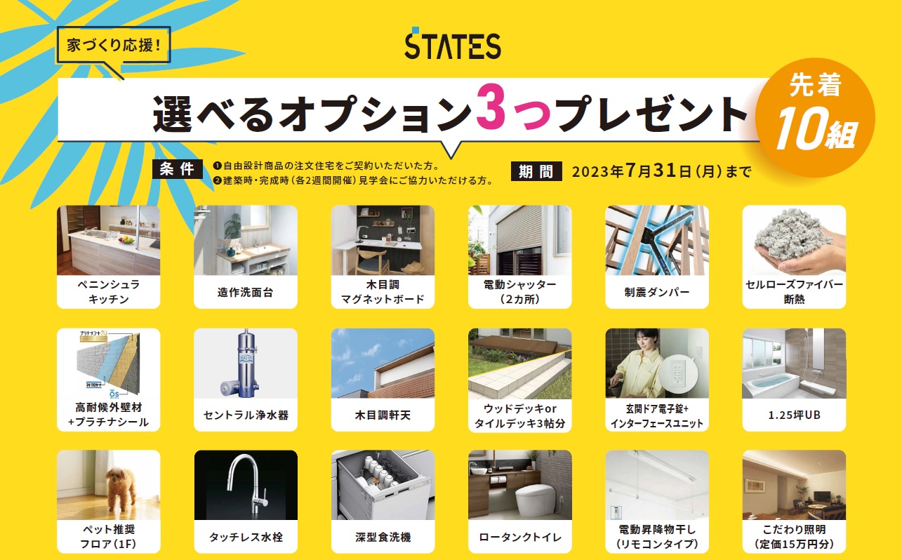 期間中、注文住宅をご契約の方に3つ選べるオプションサービス、