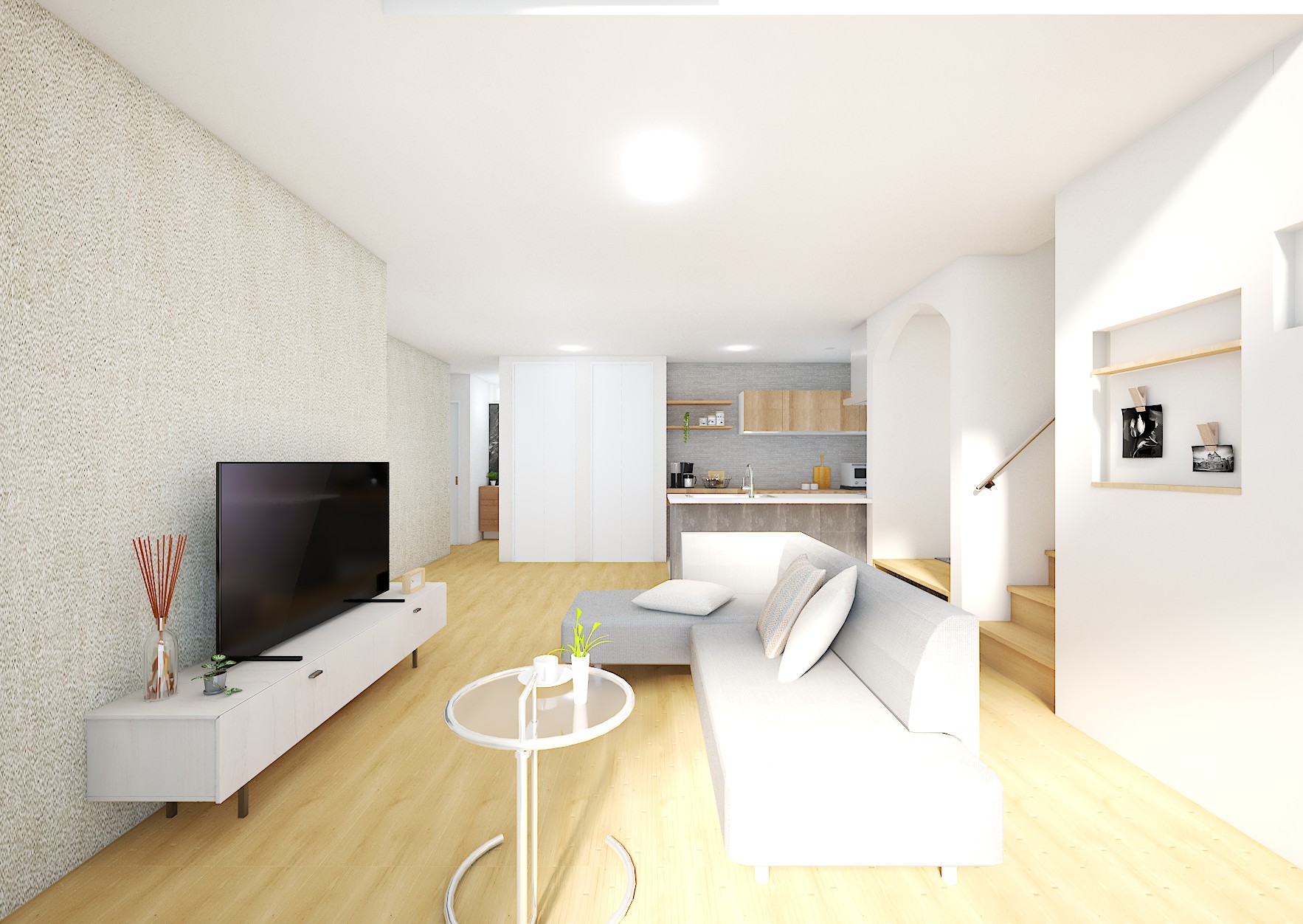 さらに、フルフラットキッチンや造作洗面台、間接照明、飾り棚、無垢材の床などのおしゃれアイテムも多数取り入れ、デザイン性と機能性を兼ね備えた理想の空間を実現しています。