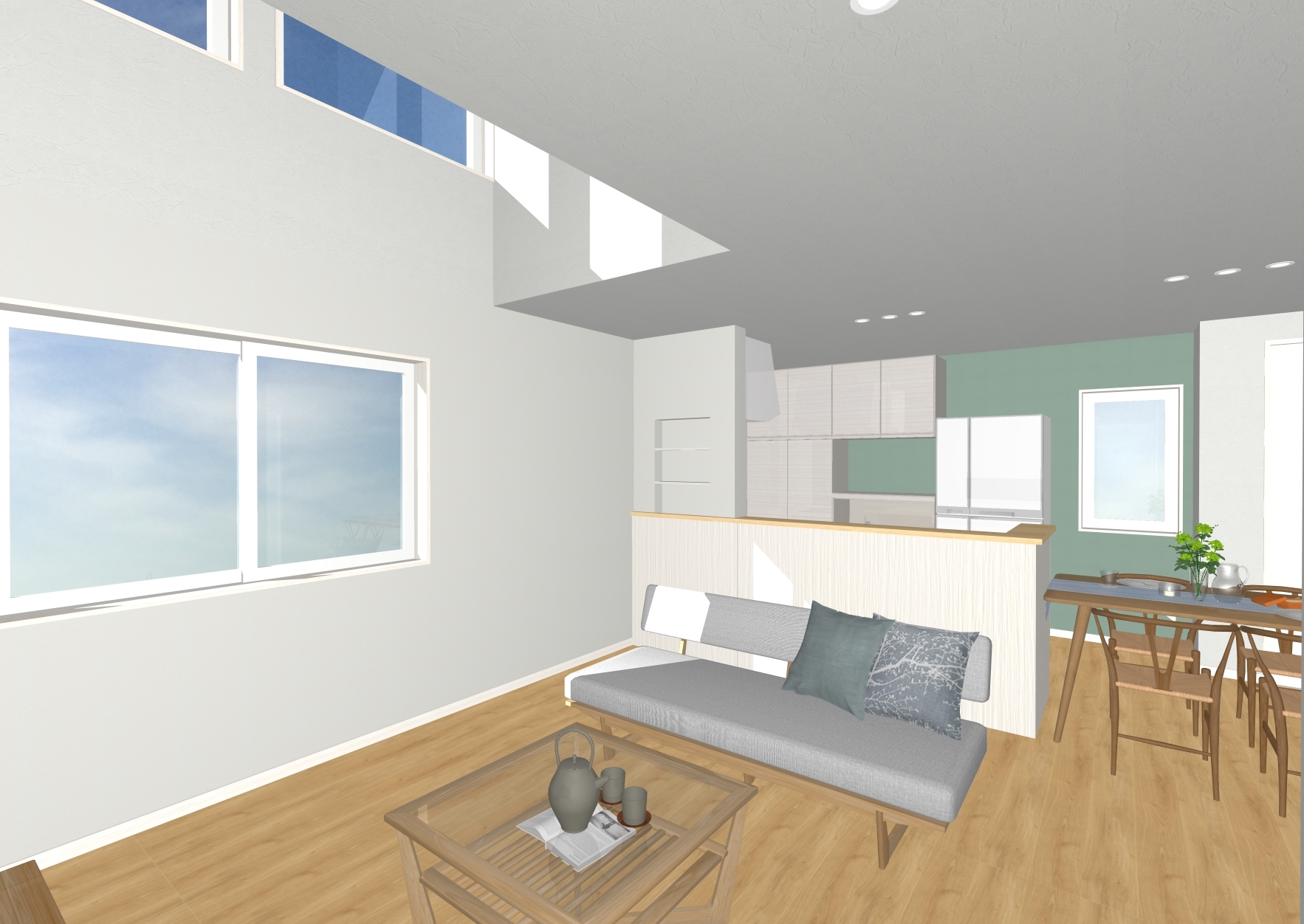 吹き抜けを設け、窓から入る光で全体を明るく照らします◎