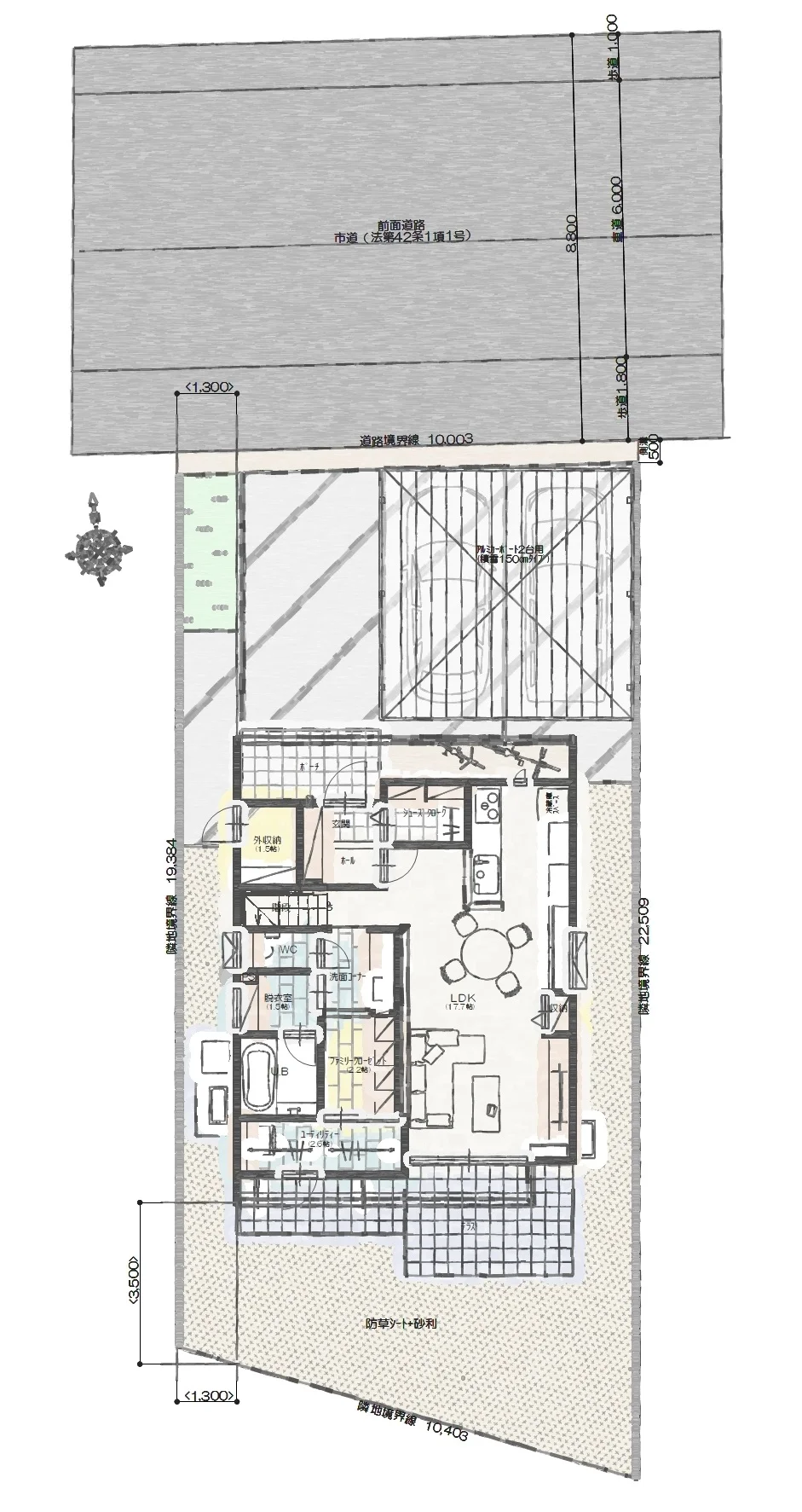 LDK約18帖の広々とした空間と、タイルテラスがひとつながりになった開放的なリビング。