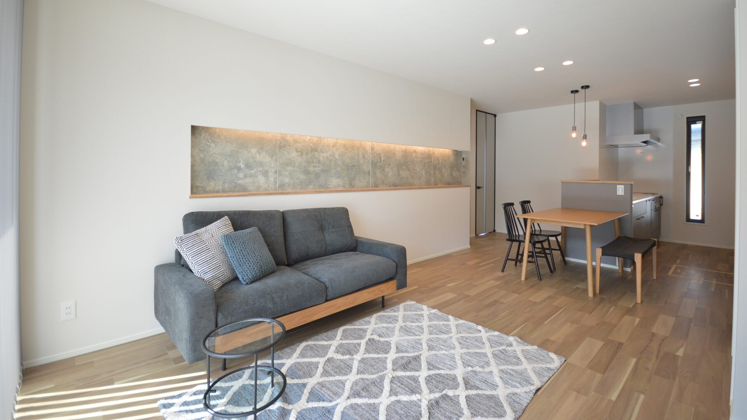リビングの飾り棚や間接照明が、毎日の暮らしに上質な彩りを与えてくれます。