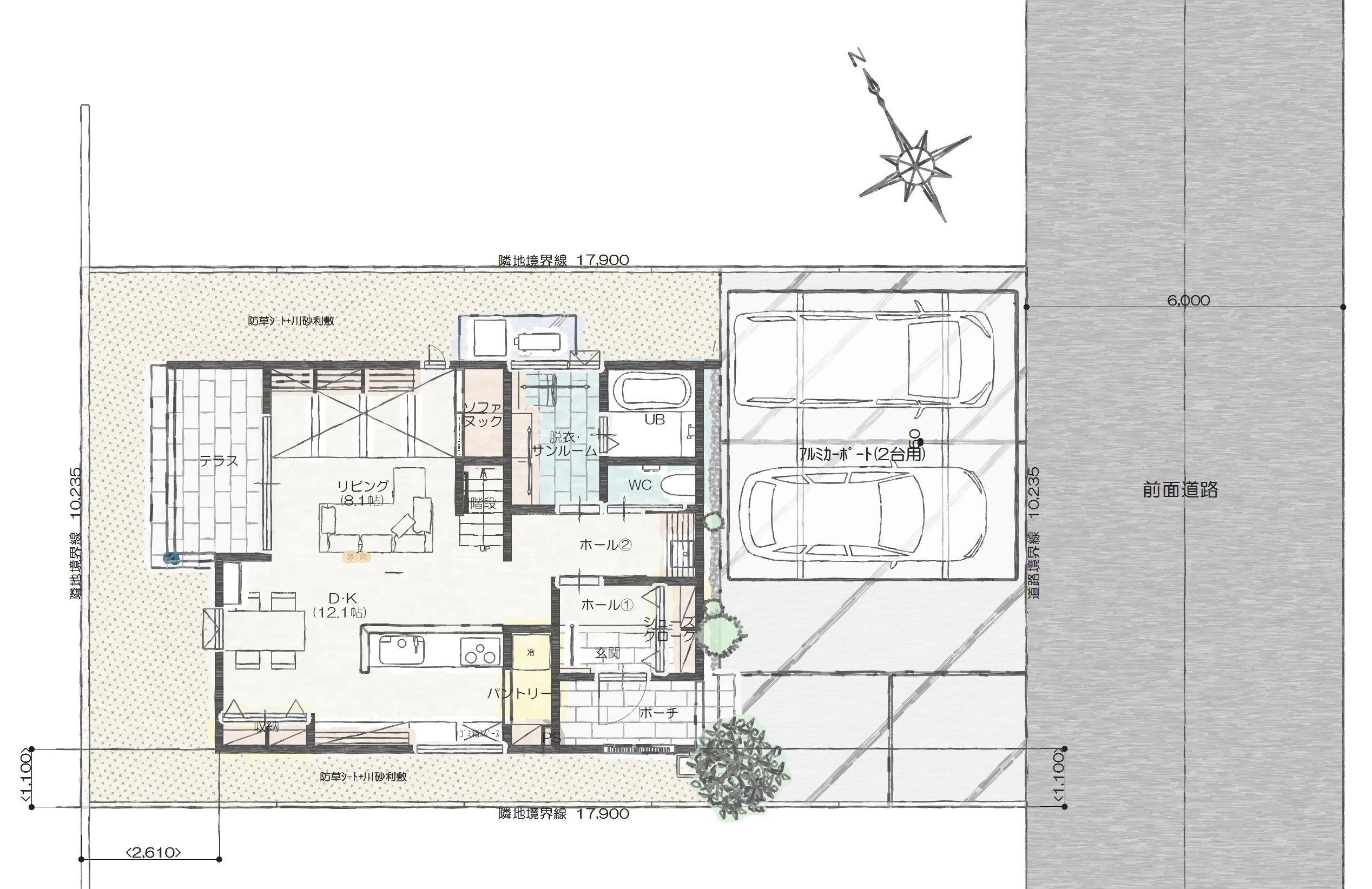 ・開放感ある西側にはタイルデッキを設置、プライベートテラスとして活用