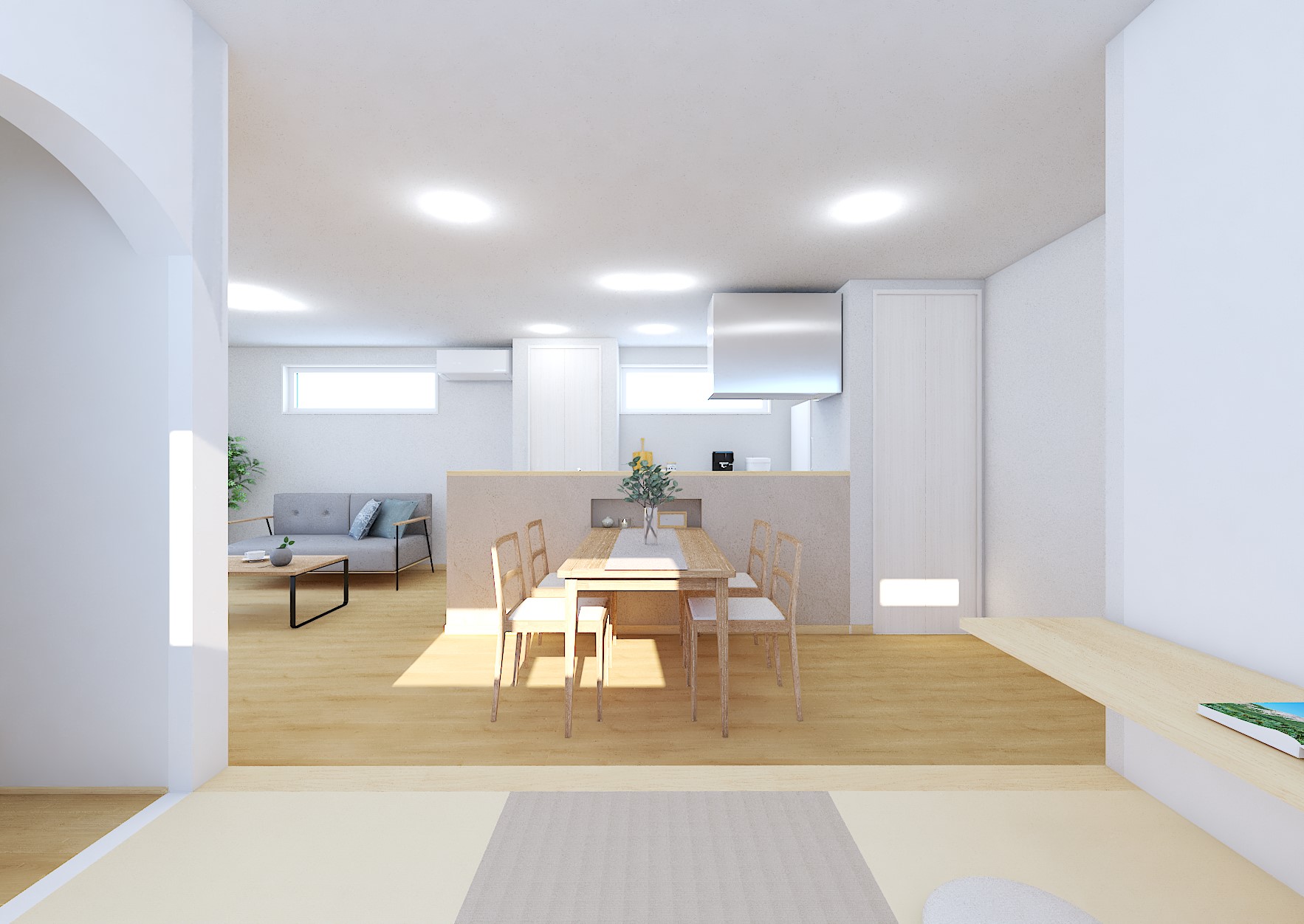 LDK18帖+小上り畳スペース3帖で21帖の開放的なリビング空間。