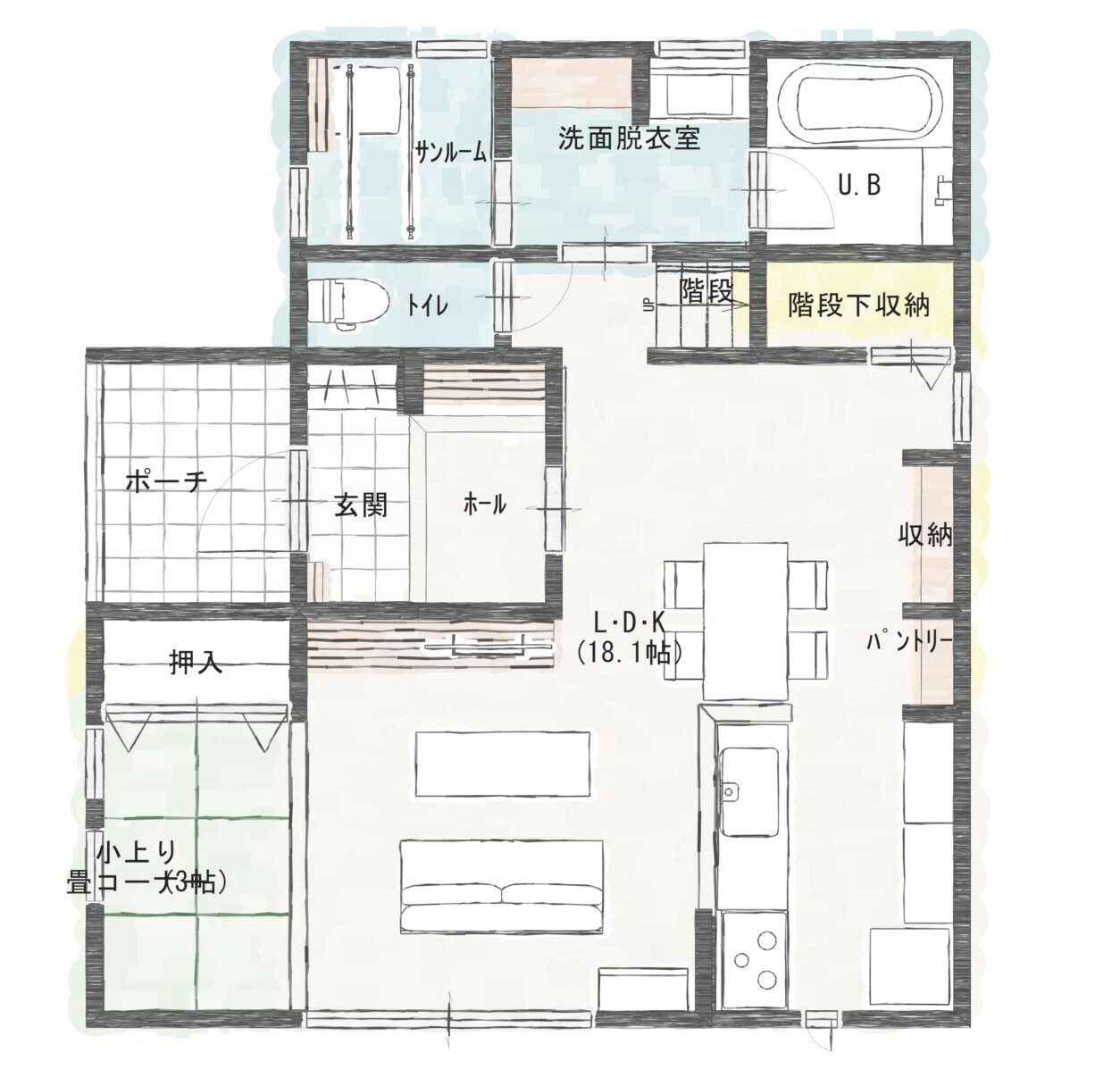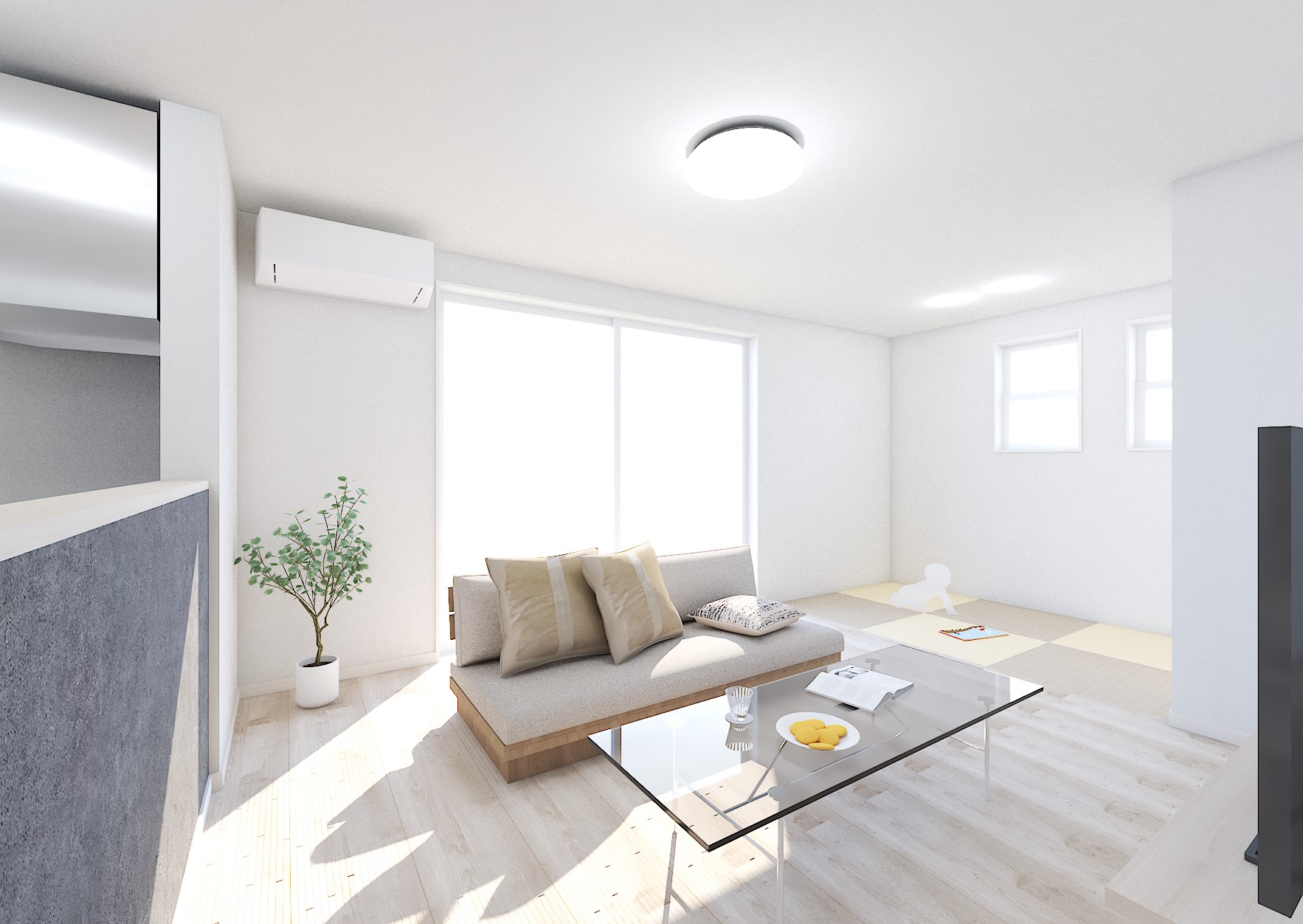 リビングに3帖の畳コーナーがあり約21帖の開放感あるリビング空間を演出しております。