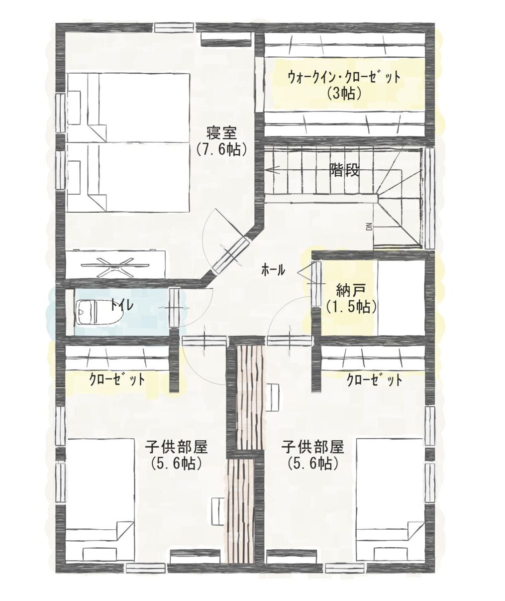 水回りも一直線で配置してあり洗濯物を洗う→干す→しまうがスムーズに行えます。