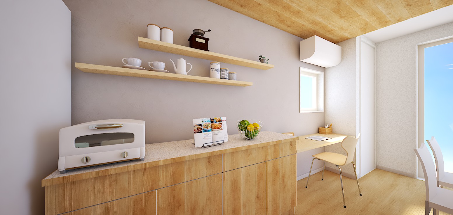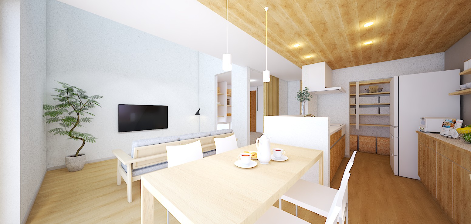 ✅DKを下り天井、クロスを貼り分けることで、空間をオシャレに演出。