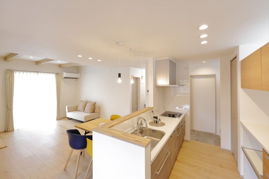 キッチン横の小上がりスペースでお子様もお昼寝などができます。回遊動線で家事ラク、室内干し可能なランドリールームも完備。