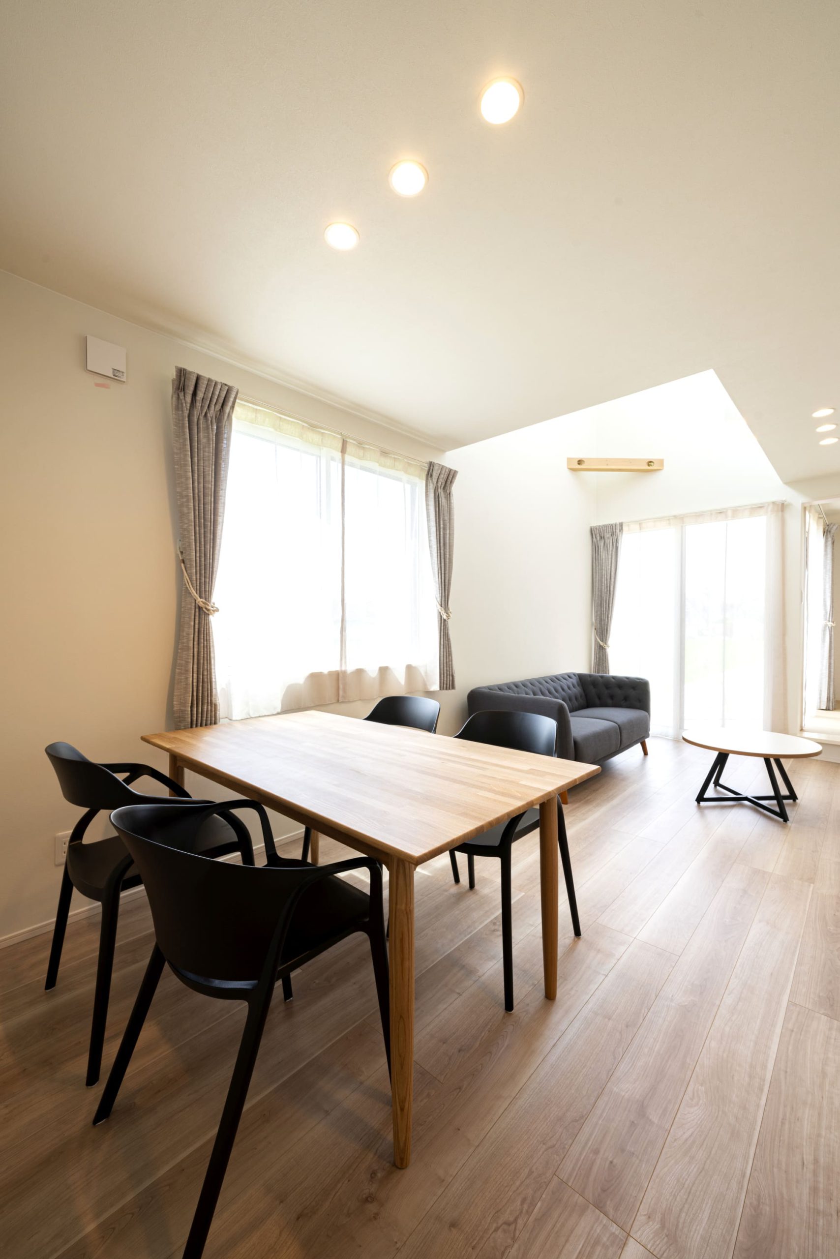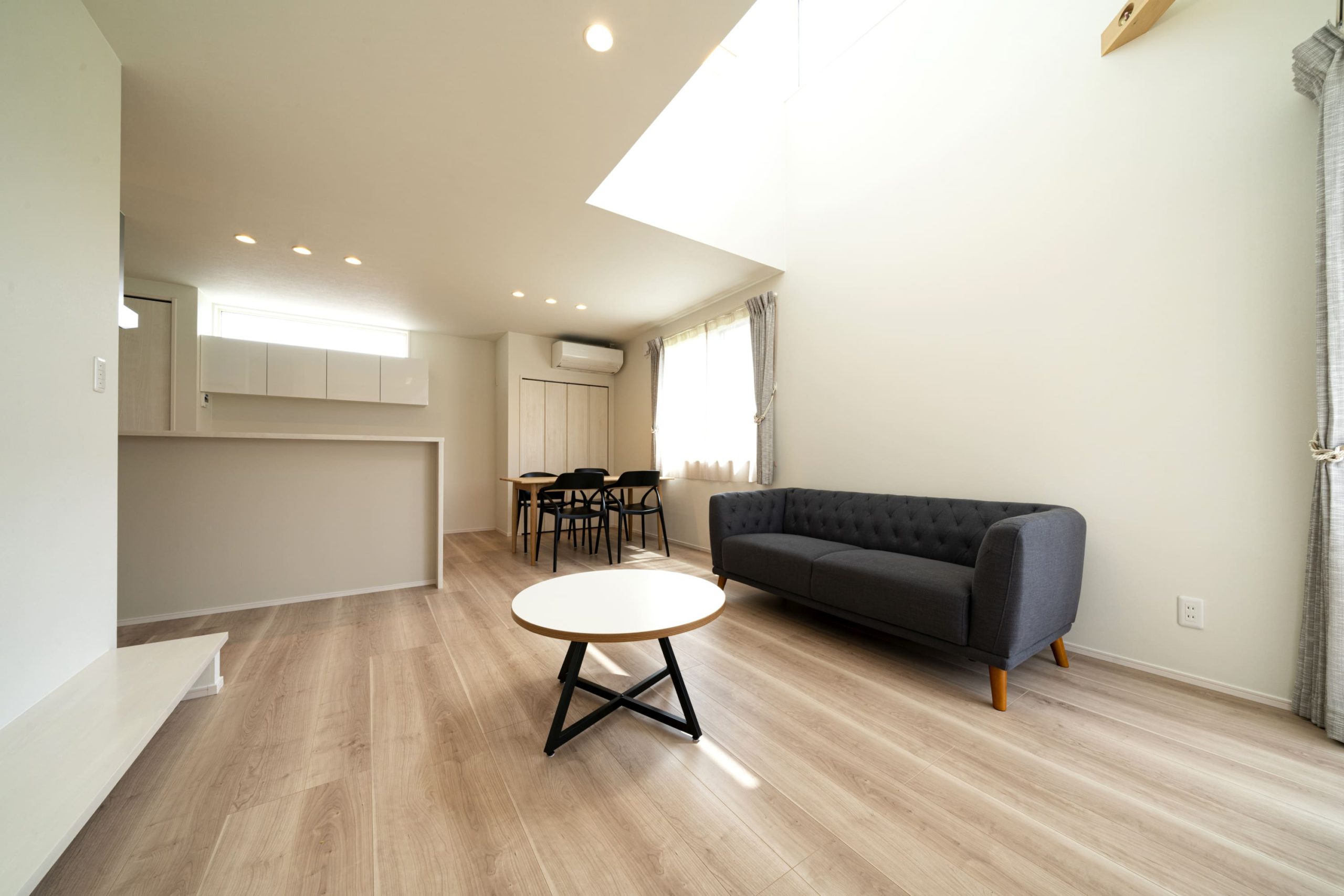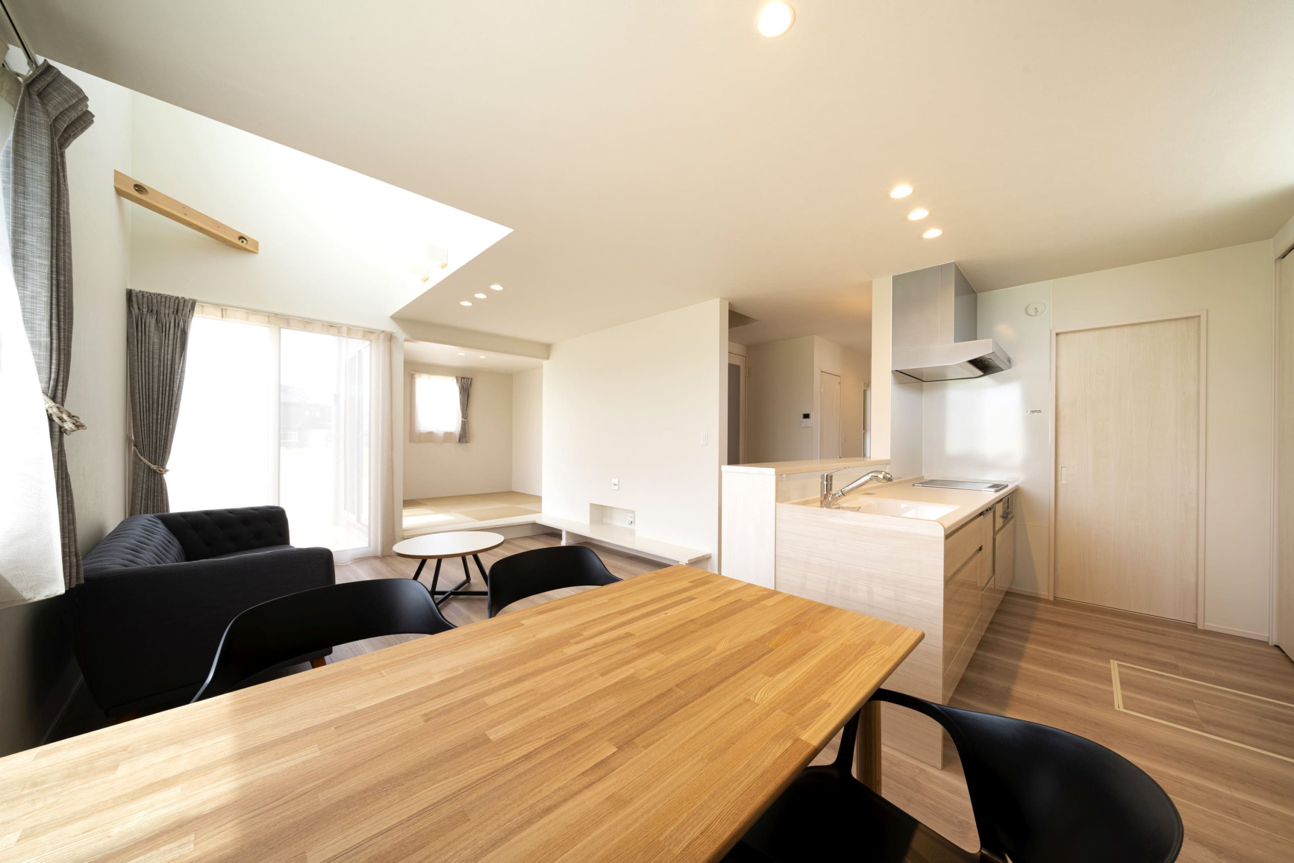 ■15.9帖のLDKは吹抜で明るく開放的な空間に。隣接する和室やウッドデッキが更なる広がりを感じさせます