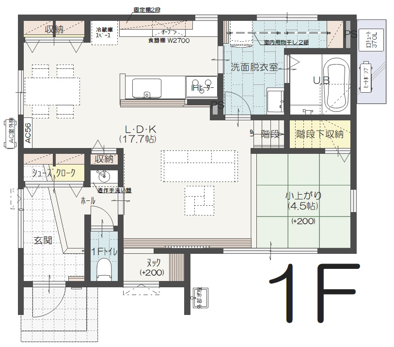 ■家族みんなが集うリビングから、ダイニング、キッチン、そして小上がりまでもひとつながりに。
