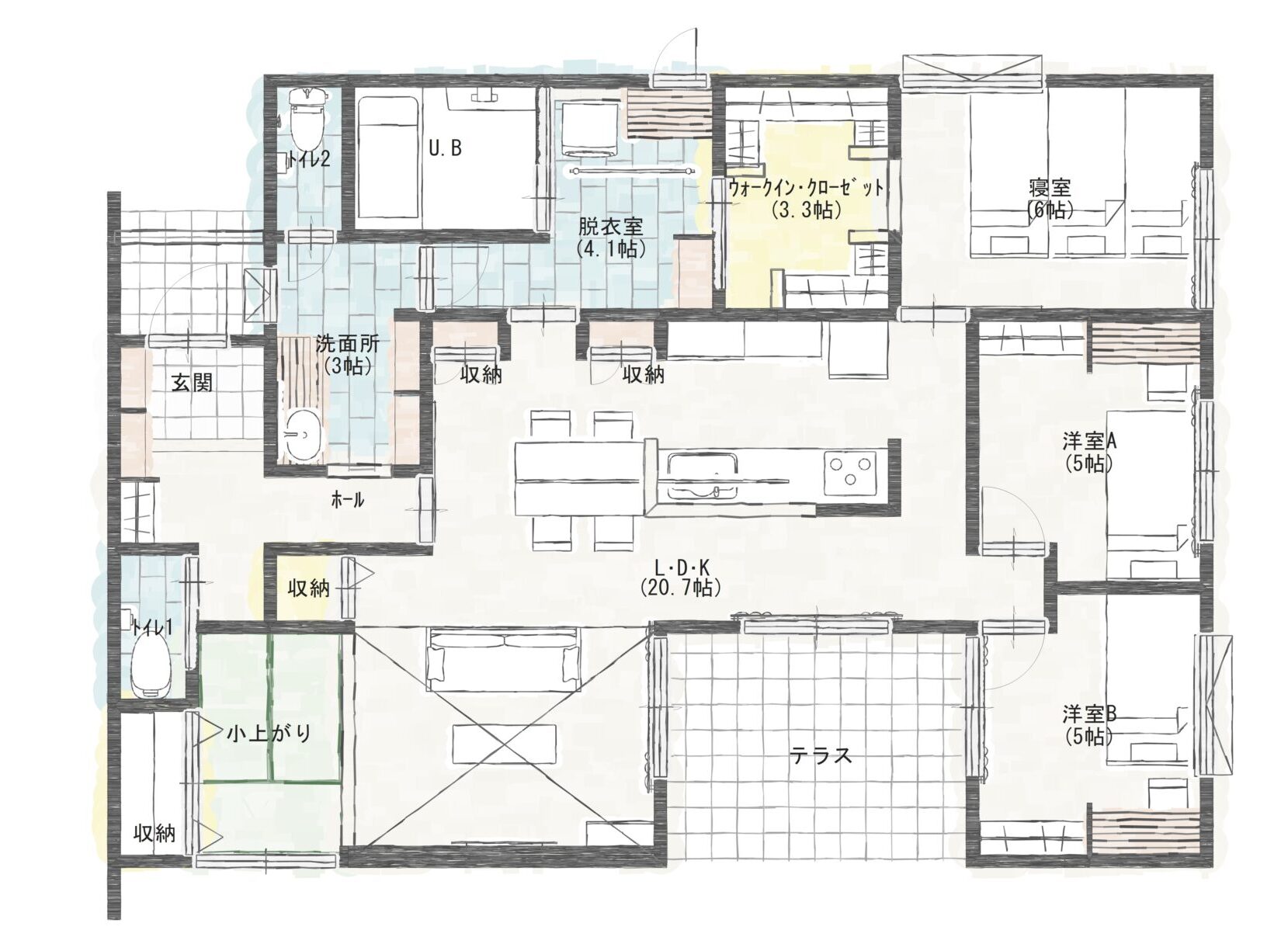 LDK(20.7帖)+和室(3帖)=計23.7帖の大空間!