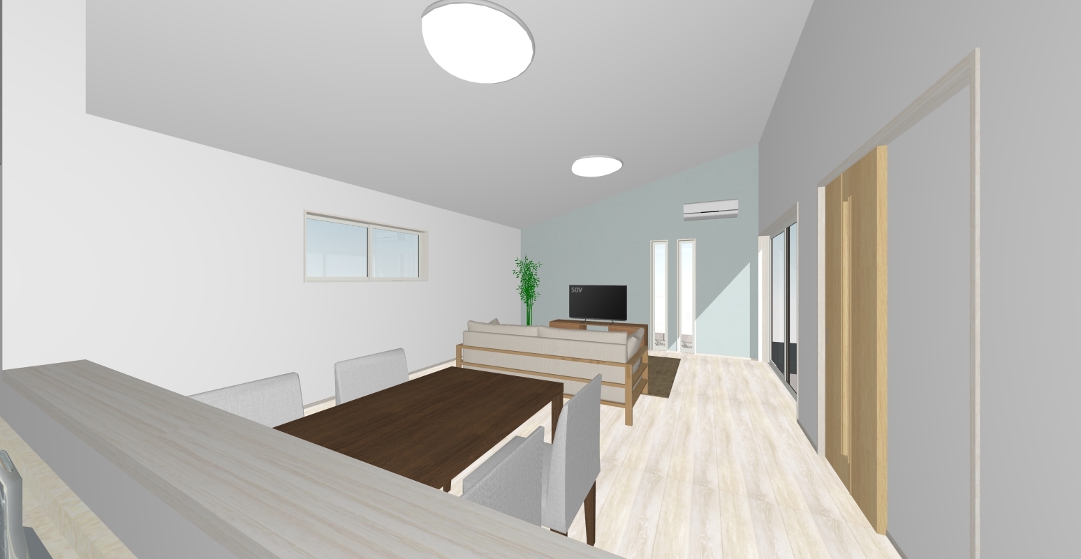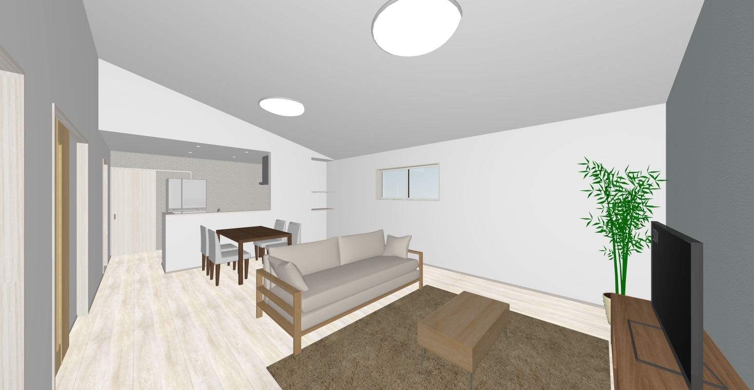 勾配天井の広いLDKで暮らしやすい空間◎