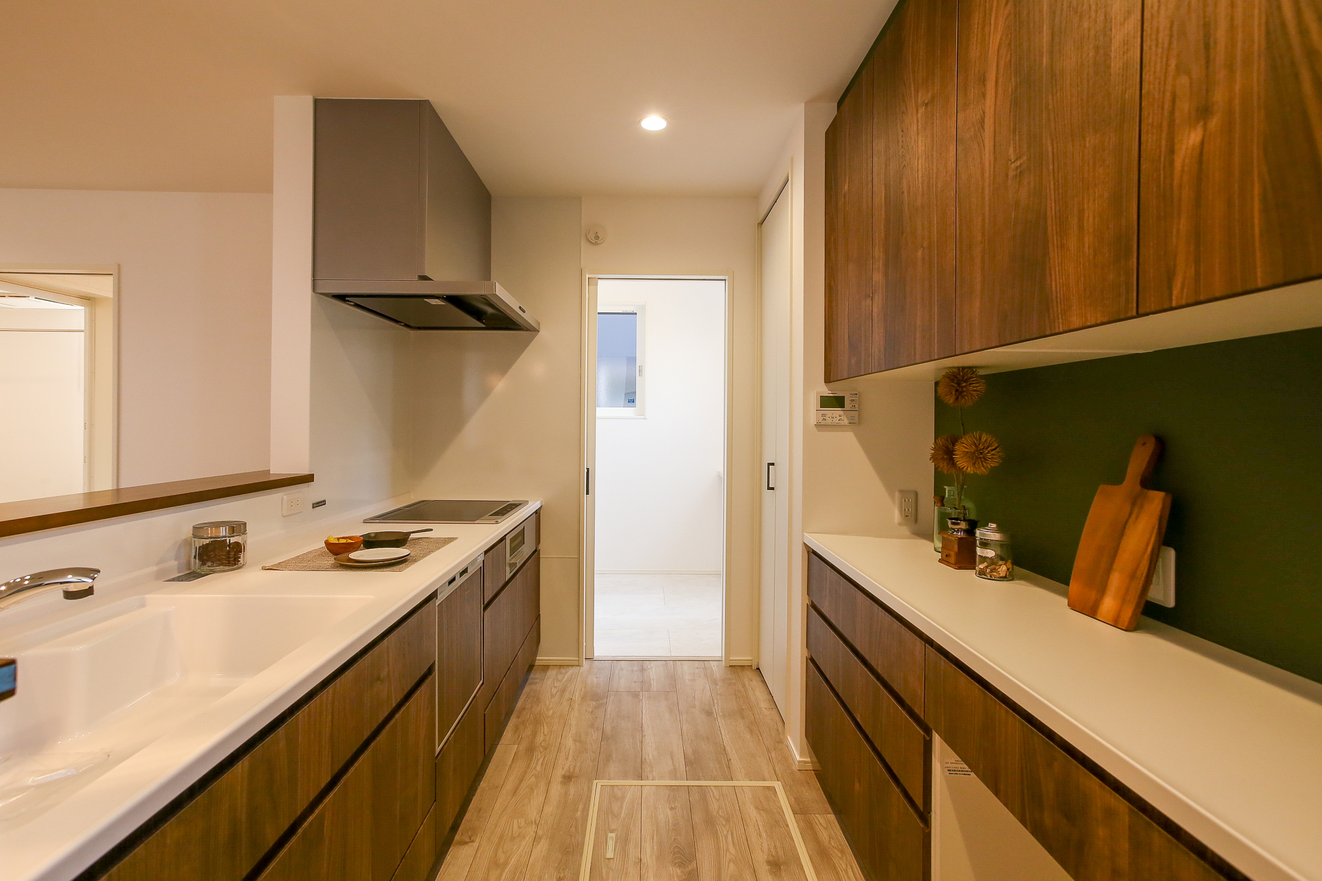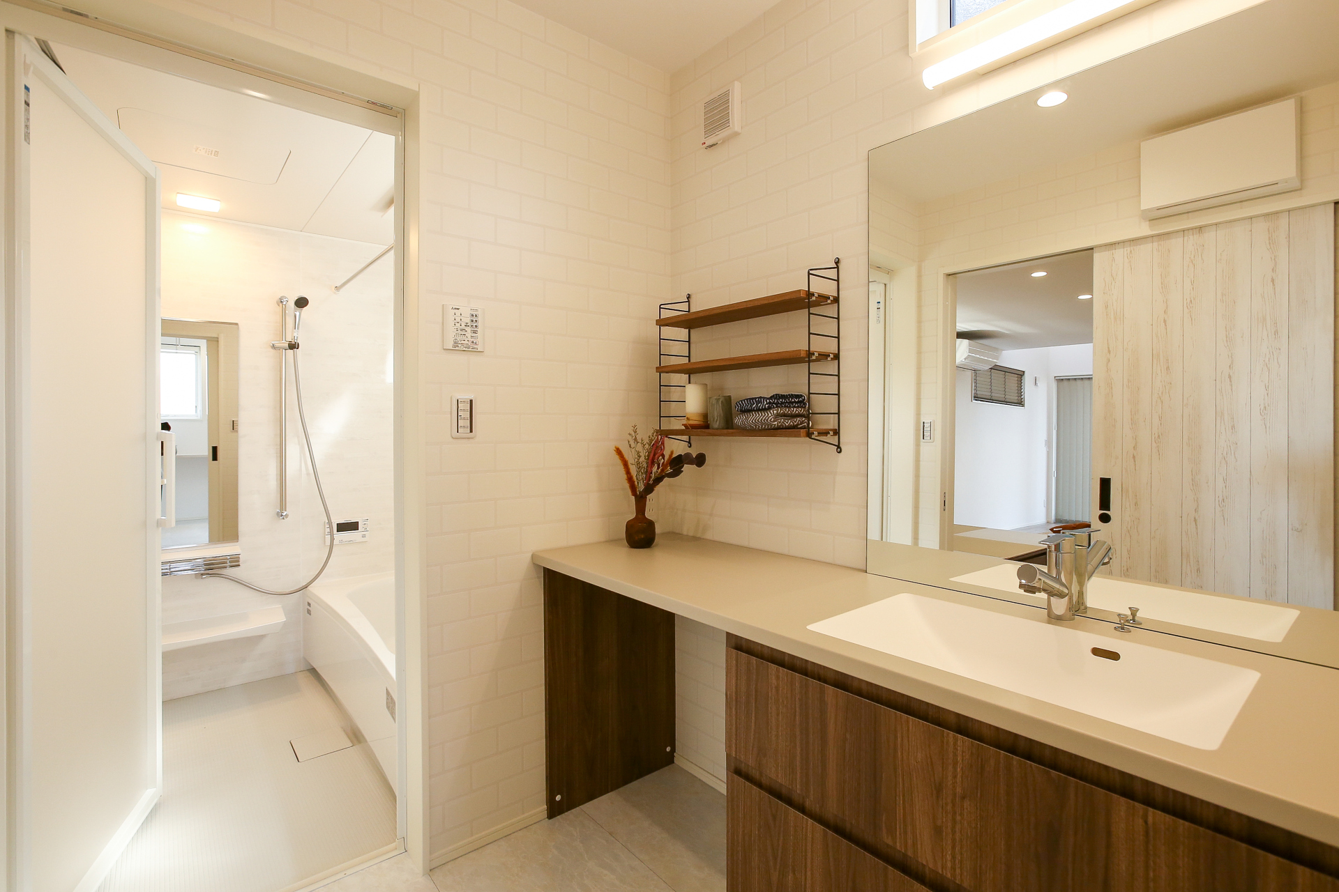 洗面台は統一されたカラーで造作し、おしゃれ感アップ!