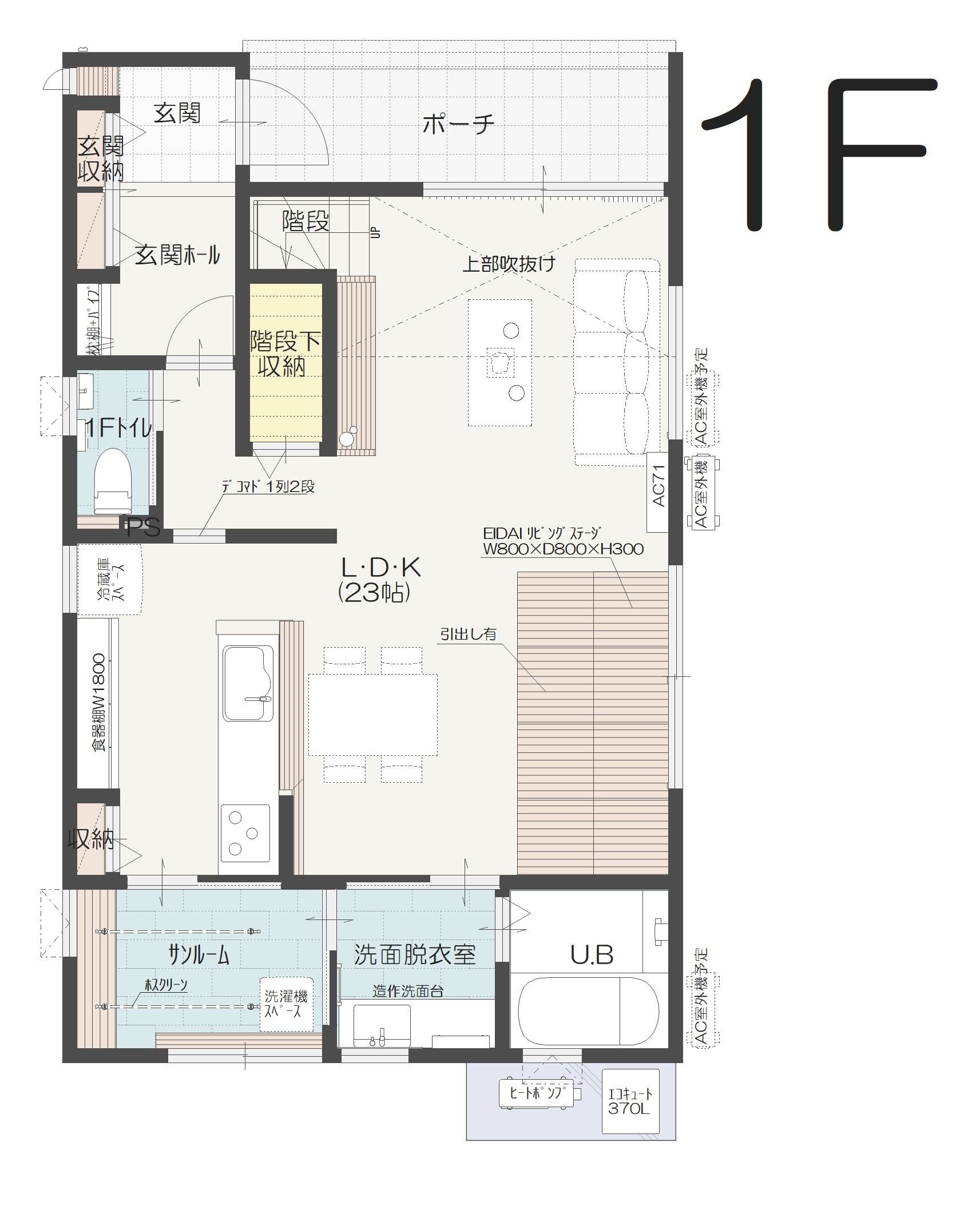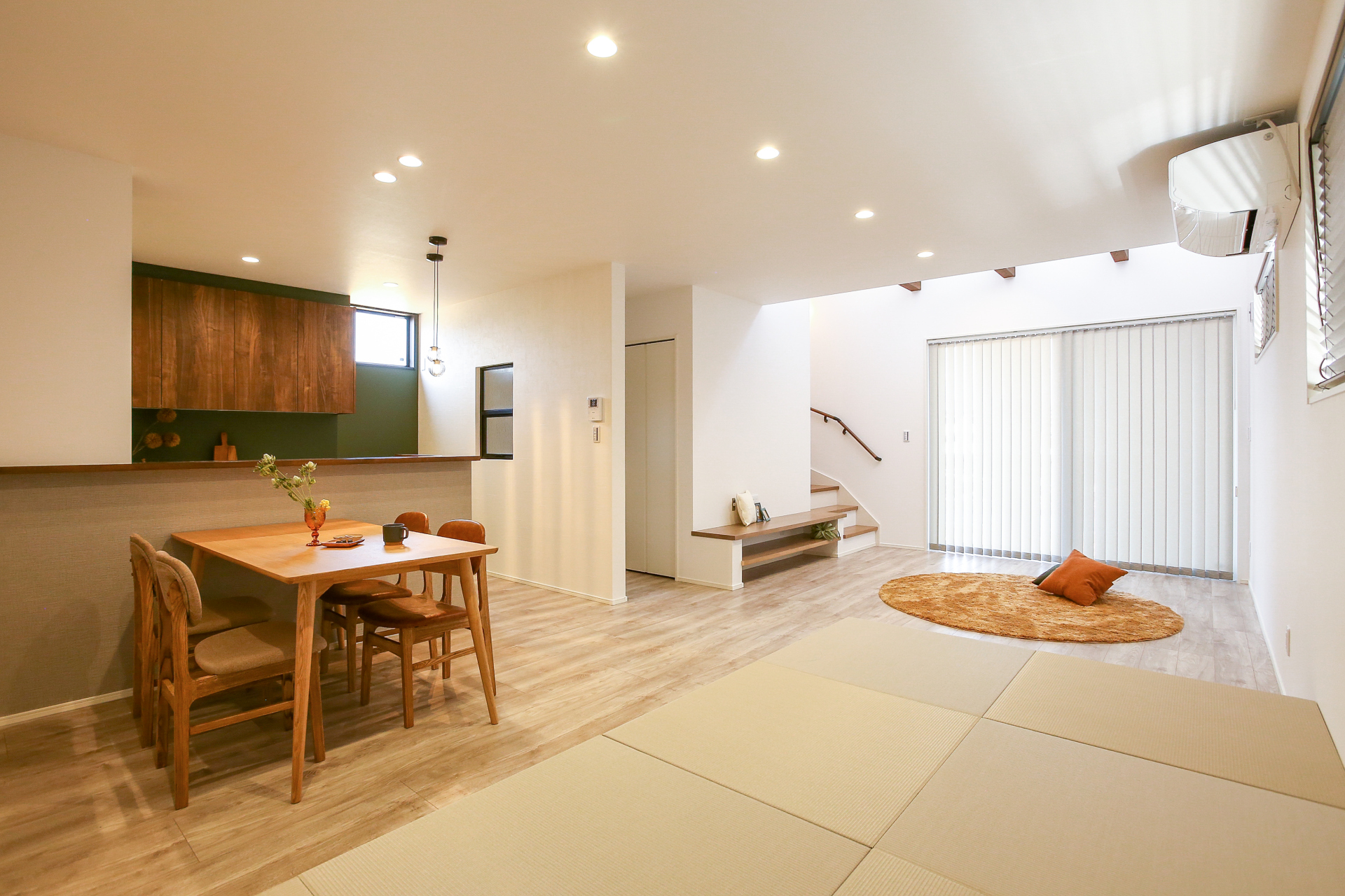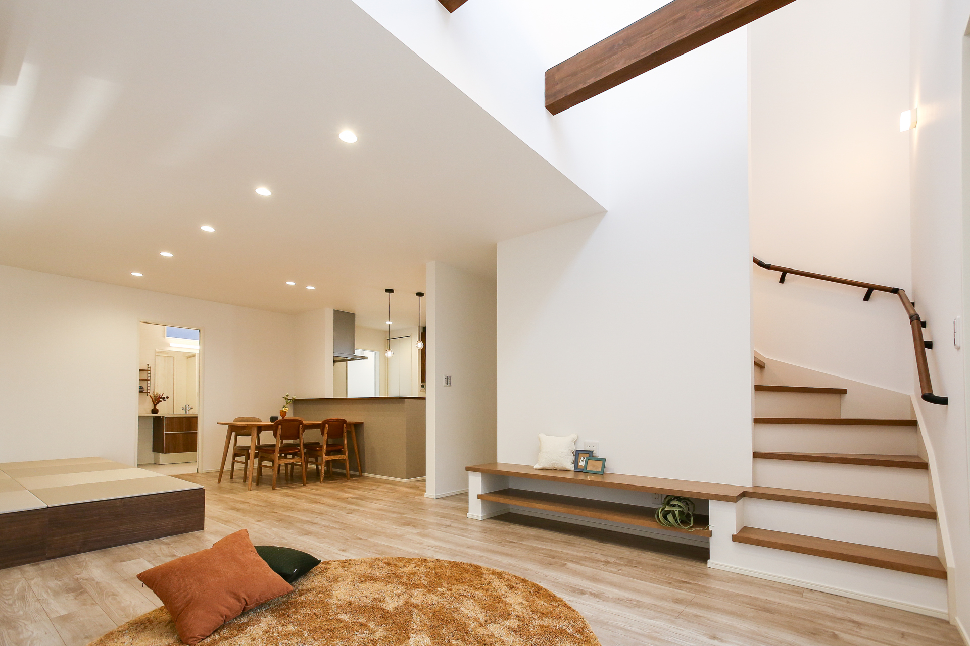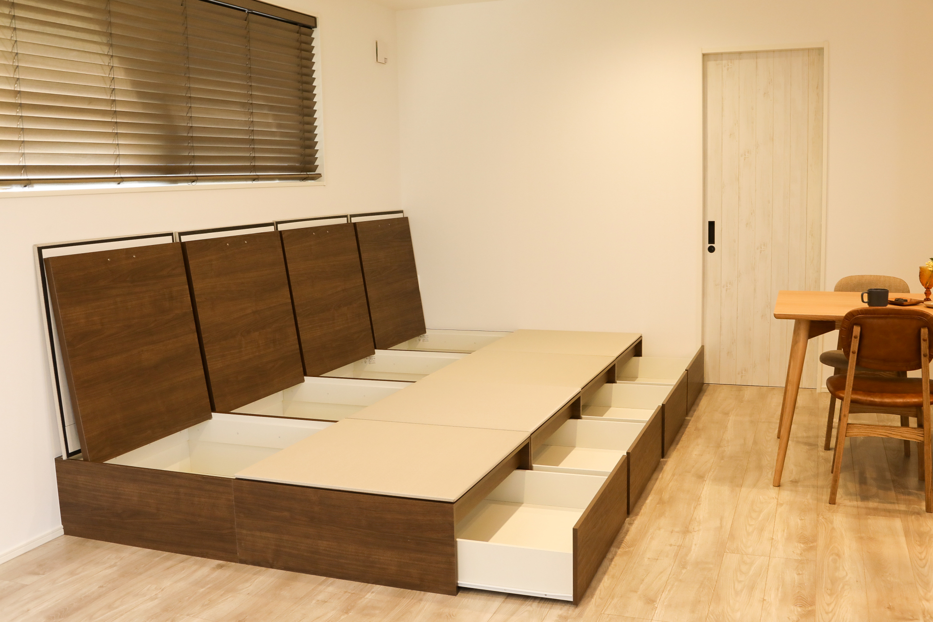 LDKの一角にある“小上がり収納スペース“は用途に応じて自由なレイアウトが可能で、収納力もあります!