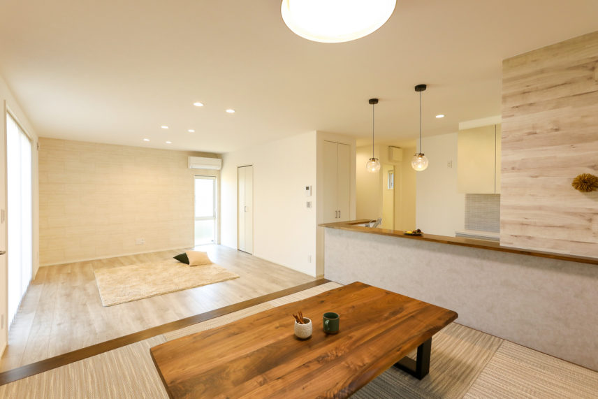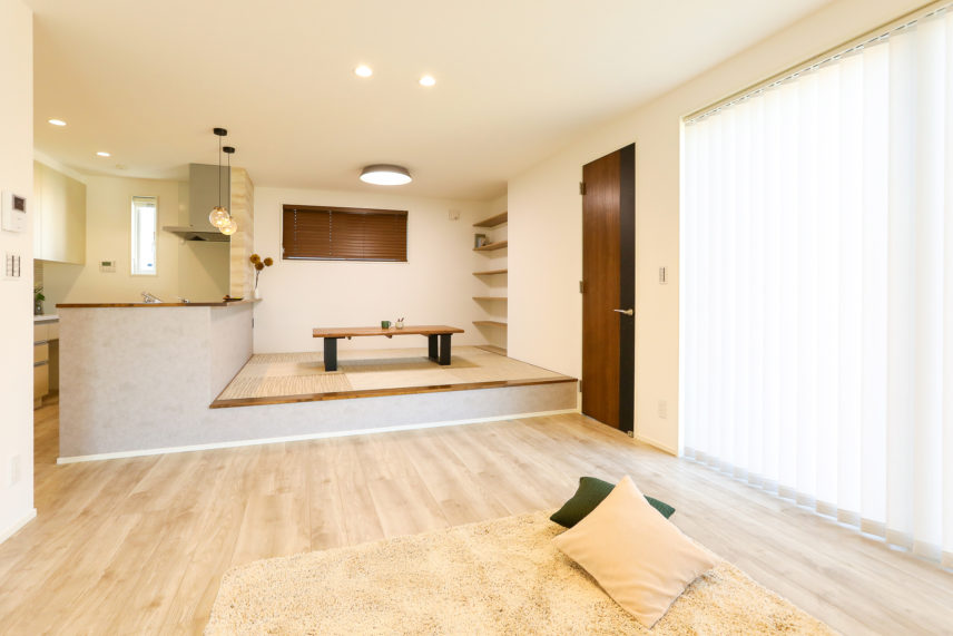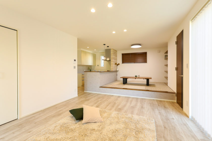ダイニングスペースを小上がりタタミコーナーとすることで、キッチンで立っている人との高さが縮まったり、多目的に使用できます。