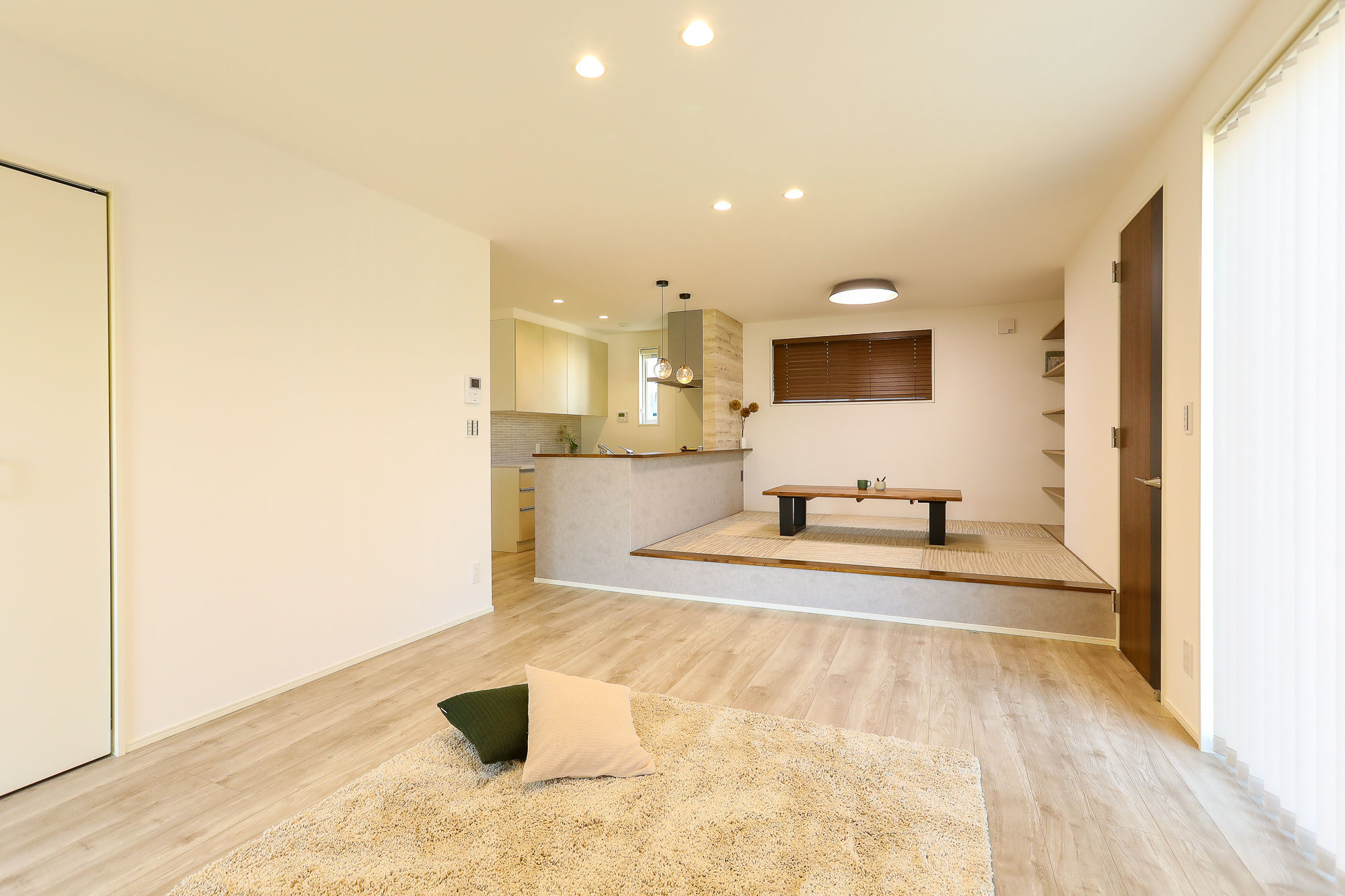 小上がりとダイニングを兼ねた畳スペースは、使い勝手がよくリラックス♪雨の多い北陸には必須のサンルームも完備してるので洗濯物が多い日も家事がバッチリ!
