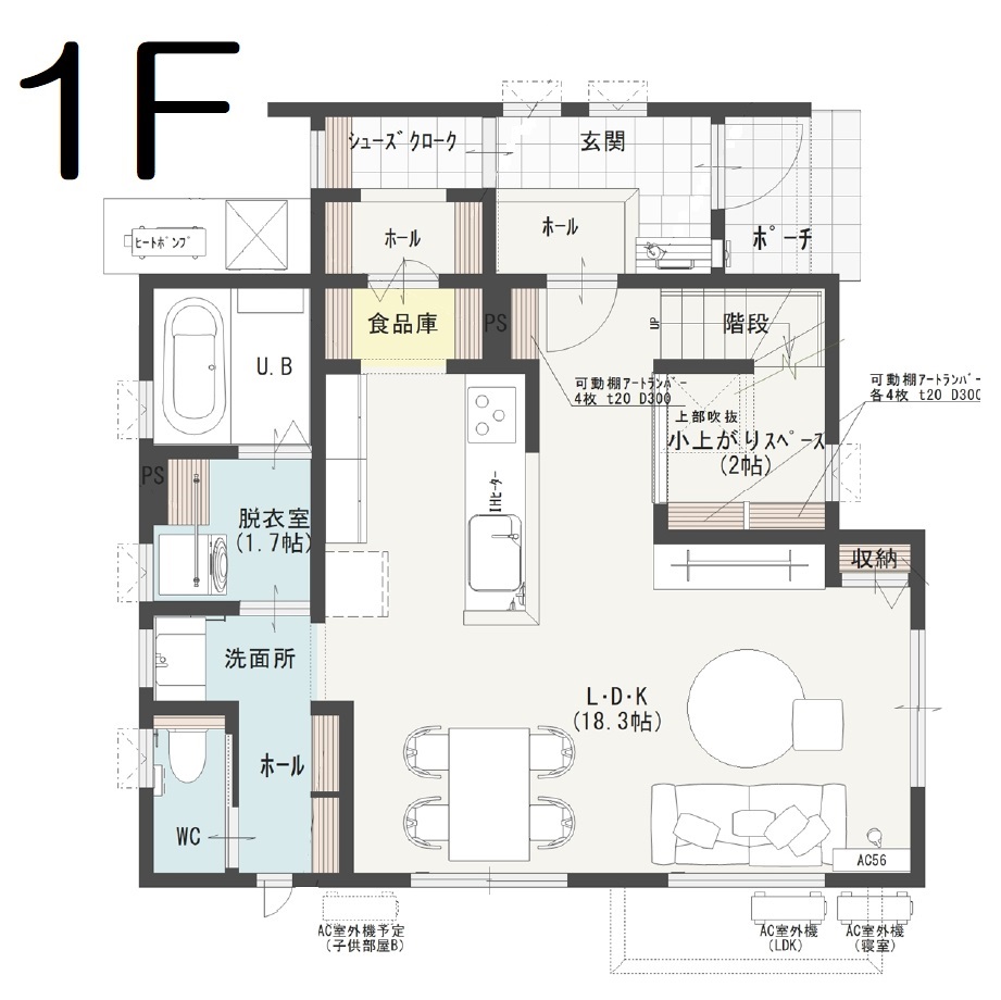 シューズクローク⇒ホール⇒パントリーと玄関から一直線で無駄のない動線も必見◎