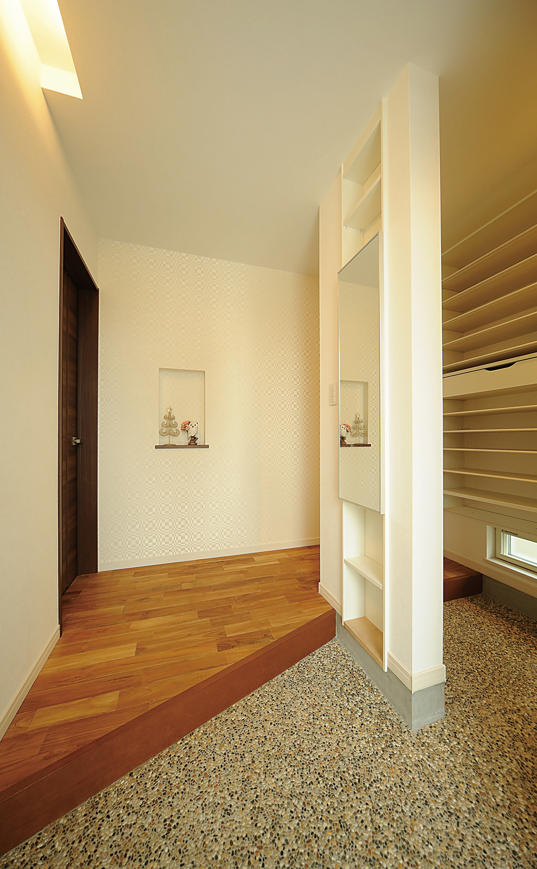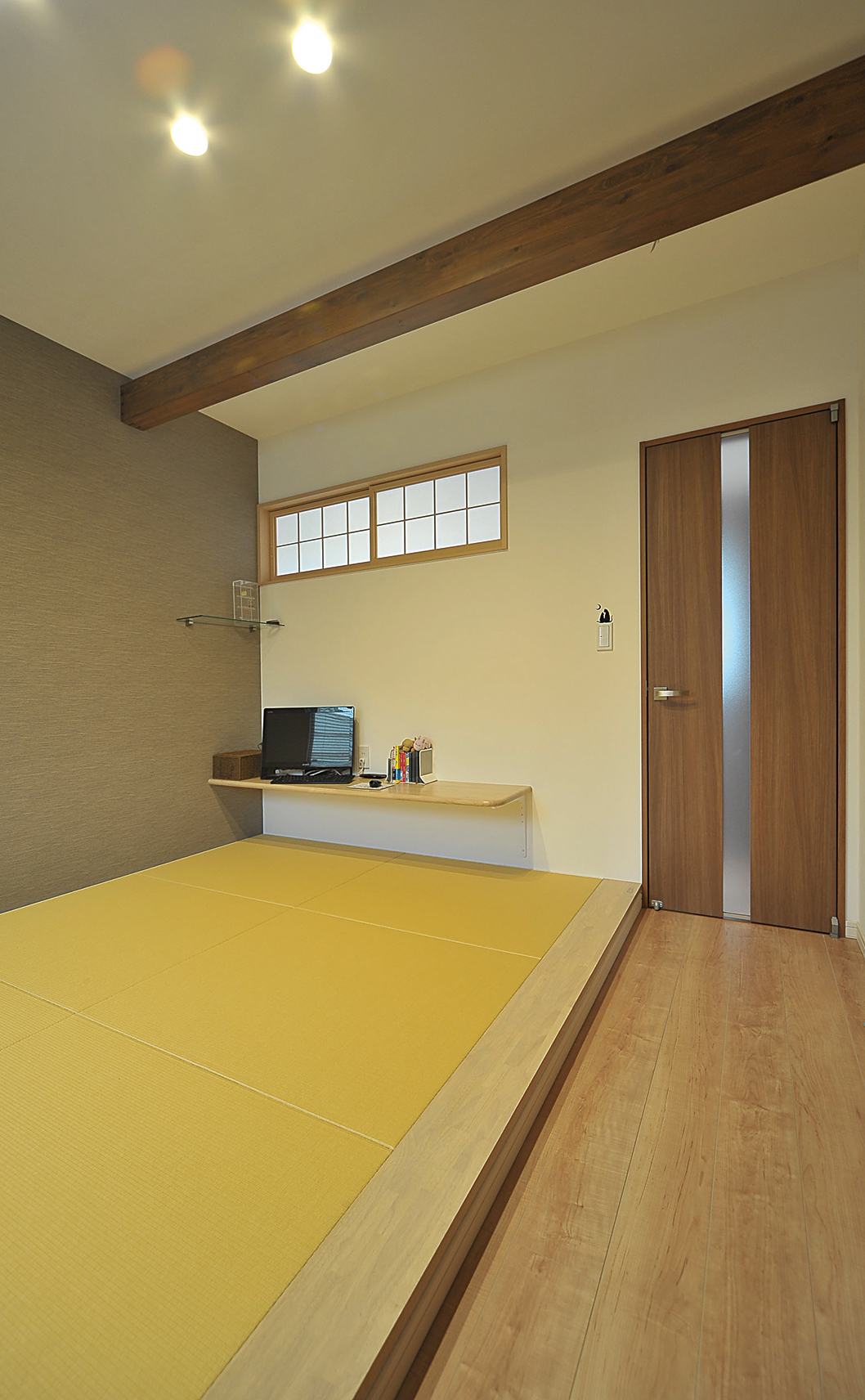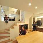 畳リビングのスキップフロアが生み出す程よい距離感が、家族の暮らしにメリハリを与えてくれる。