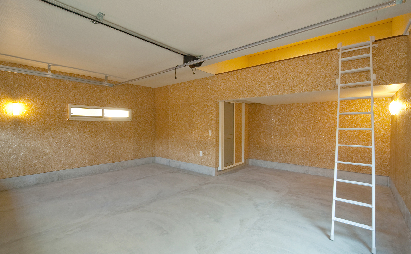 南フランス風の外観が、懐かしさを感じさせる住まい。重厚感のあるシャッターの先は、ロフト付きのインナーガレージが。梁現しの吹抜けリビングは、開放感と自然素材感をもらたします。
