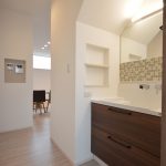 階段下を利用した動線の一部の洗面ホール