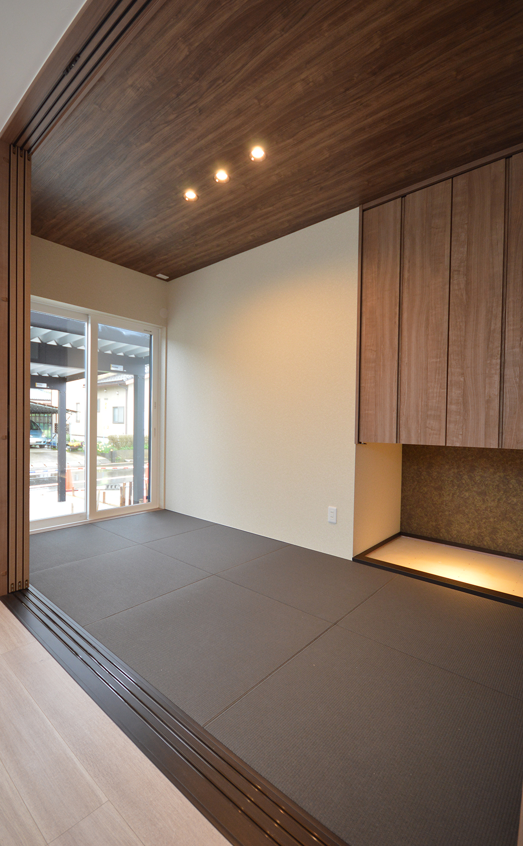 木目と間接照明がアクセントの和室