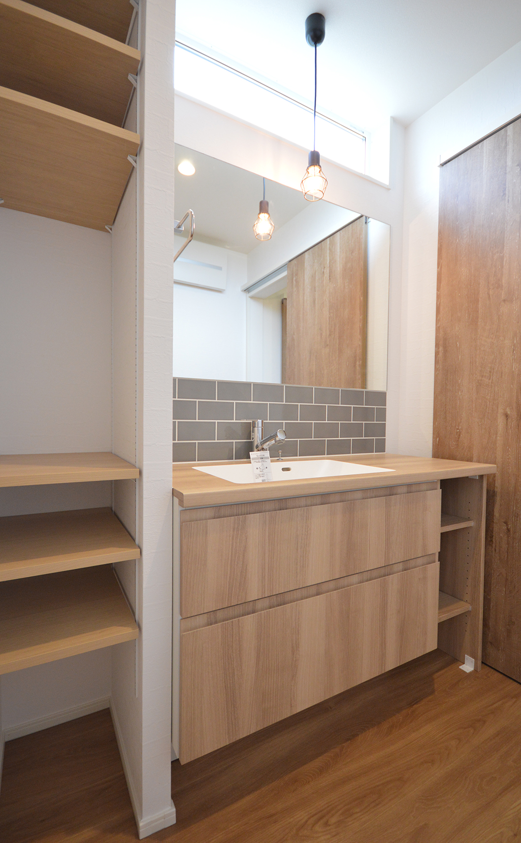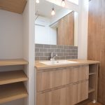 タイルがアクセントの造作洗面台