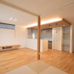 階高から考え、天井高2.6mの高天井としたLDKは吹抜け無しでも圧巻の解放感です。和室も開放することでより広さ感を大きく感じられます。