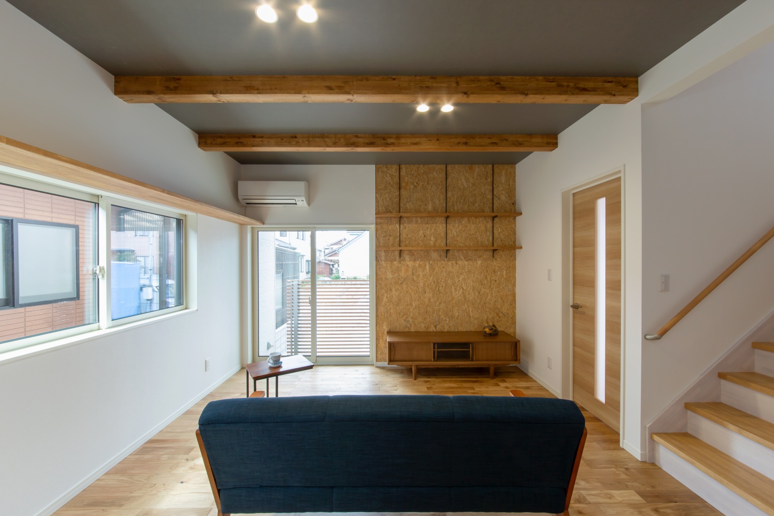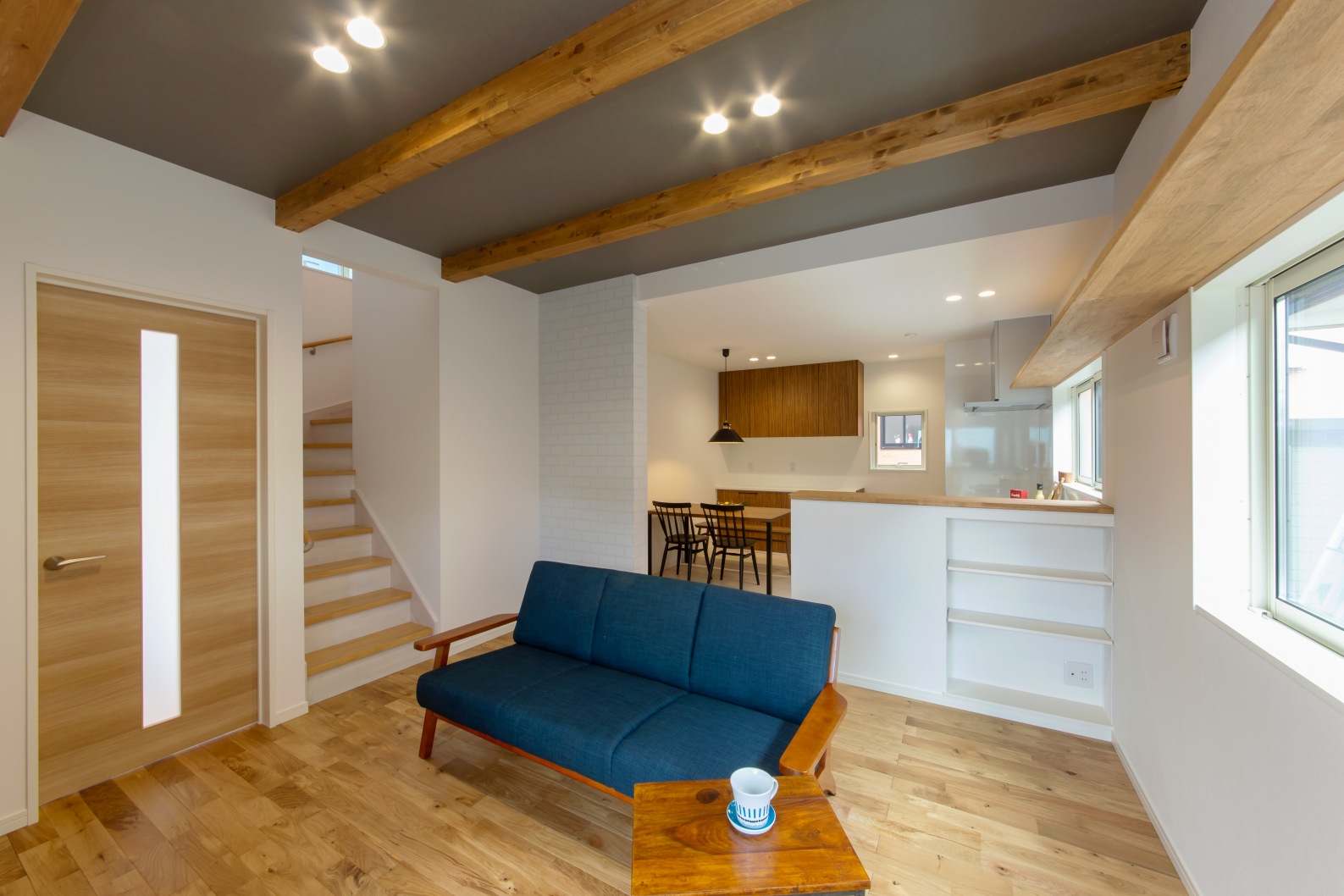 シンプルな造りとしながら、無垢の床、梁現しなどの内装にこだわったデザイン規格住宅。