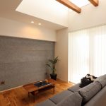 「禅」をベースとした効率の良い間取りに角材のルーバーや木の板張り、梁現しといった連続性のあるデザインで表現。