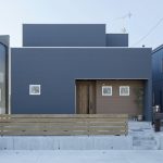 3ブロック組み合わせたような窓の少ない外観がおしゃれな家。 リビングはスチール手摺がインテリアとなる空間です