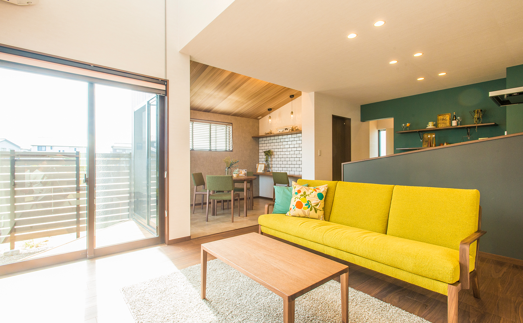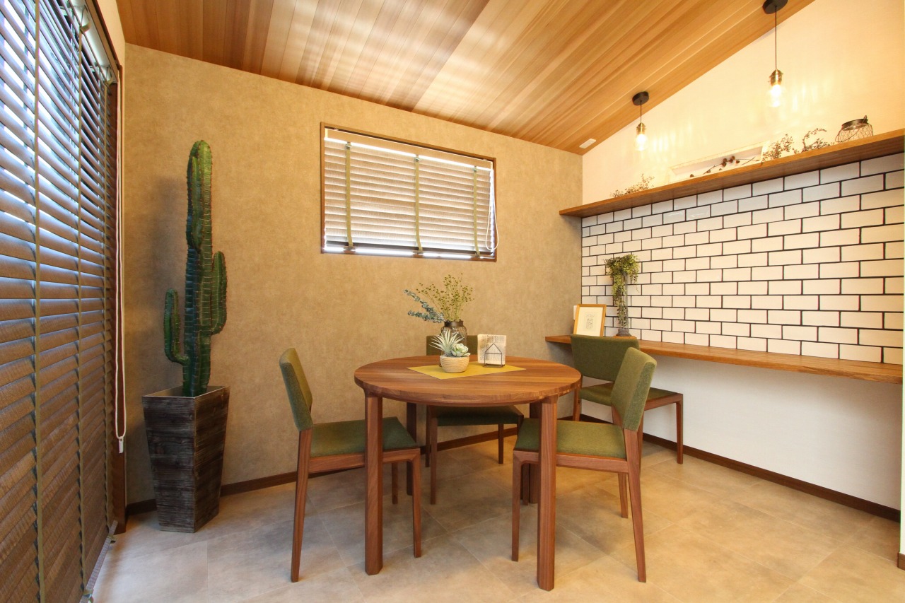 ダイニングスペースを区切って内装を変えることで、特別感を演出、Café気分を味わえる空間に。