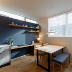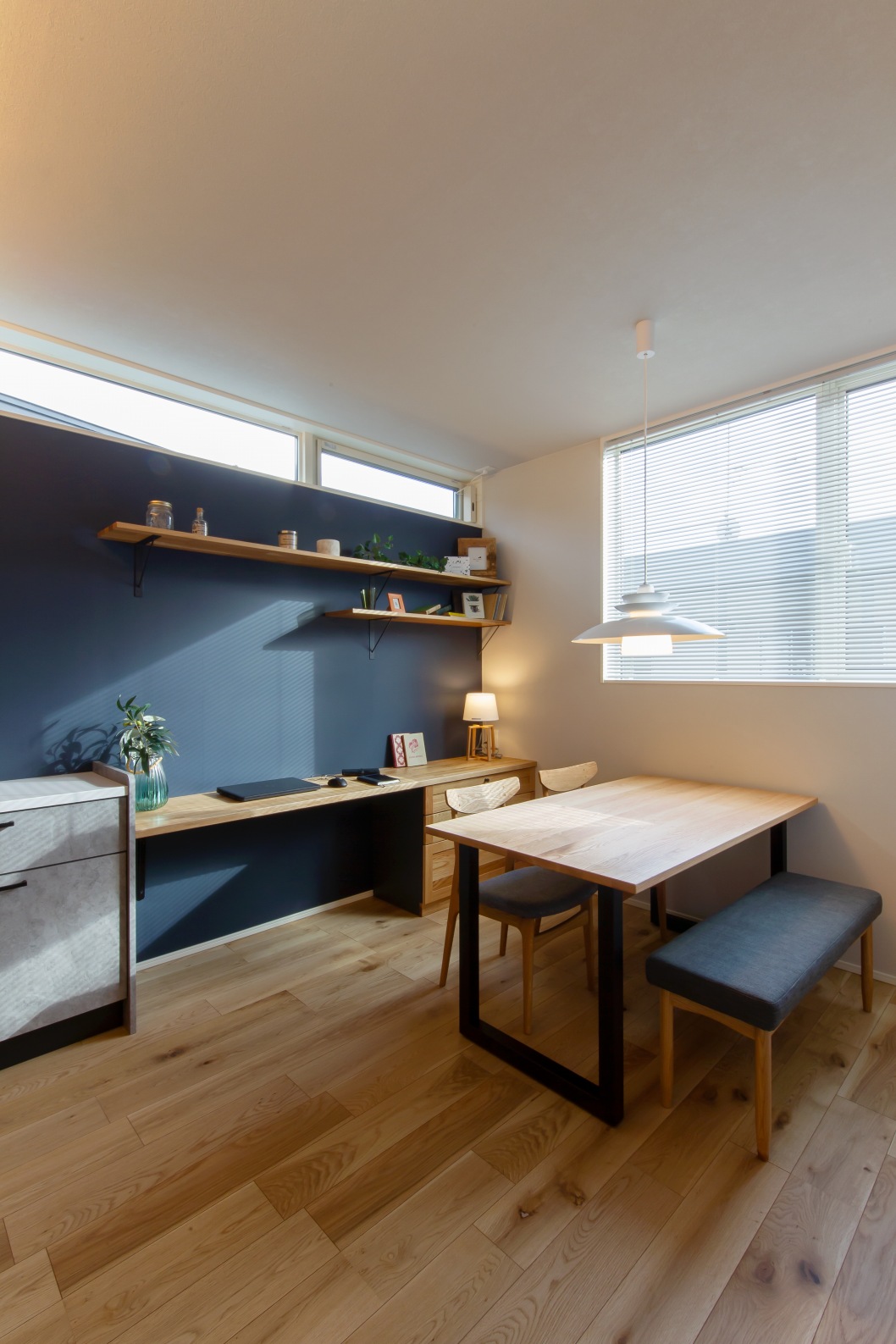 こだわりの素材を使用し、素材感を随所に感じられる空間でおしゃれに住まうことができます。2階リビングの家なのでダイニング、リビングに心地の良い光が入ります。