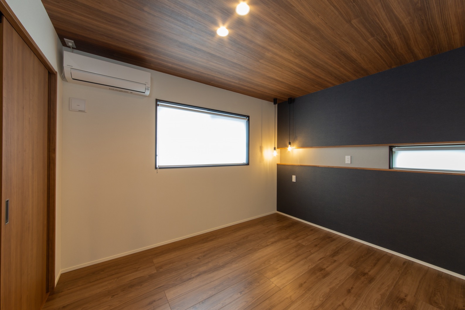 木目天井の寝室