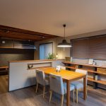 リビングとダイニングキッチンを緩やかに分けることでそれぞれの使い方、デザインを造り出します。