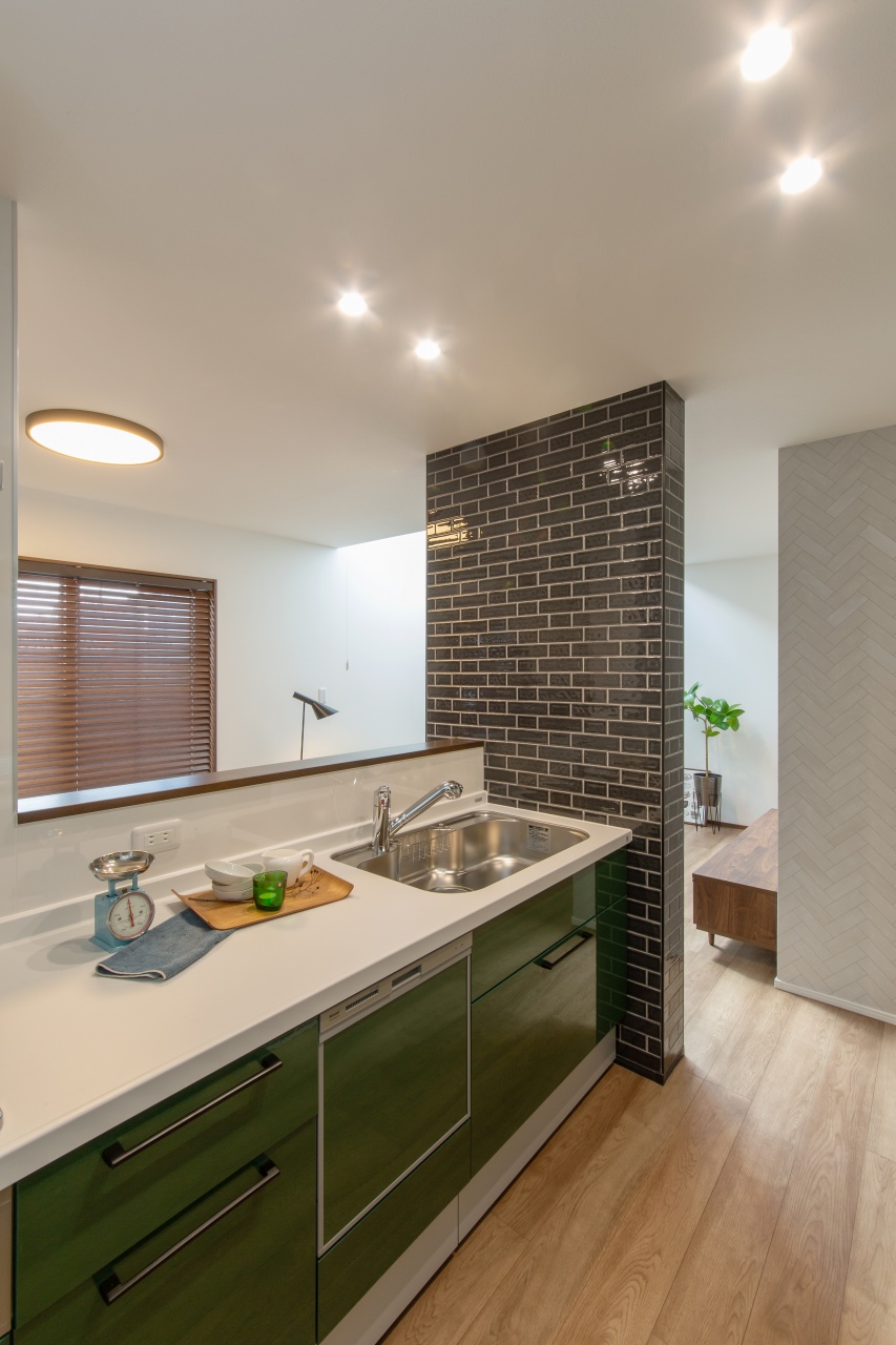 階段やキッチン、通常隠したい部分にデザイン性を持たせ、デザイン性に惹きつけて隠すという考え方。