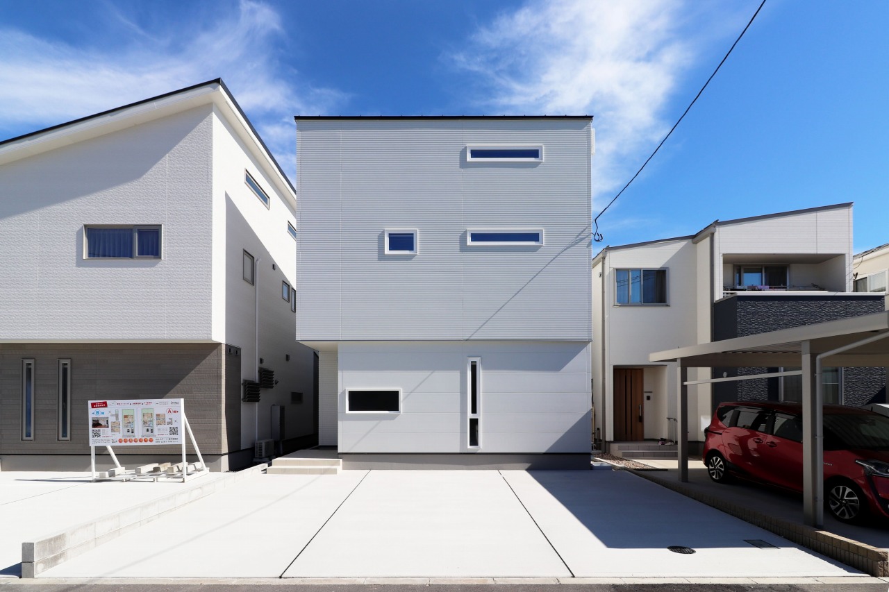 坪数:30.96坪【177】シンプルモダンな白い外観の二階建て住宅
