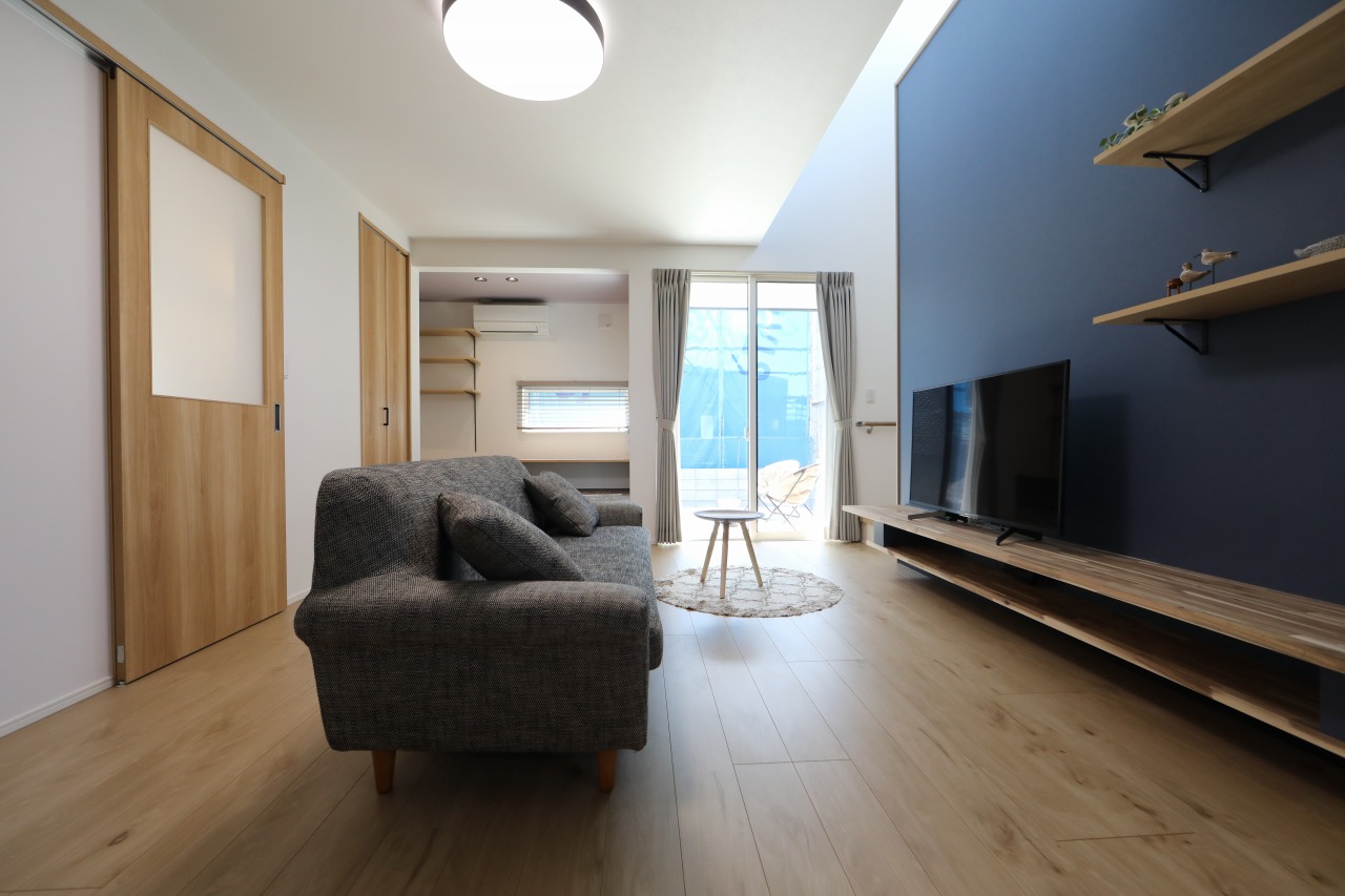 囲われた広々テラスでお家時間を楽しめる。屋内もデザイン性に配慮し、住みよい空間に。