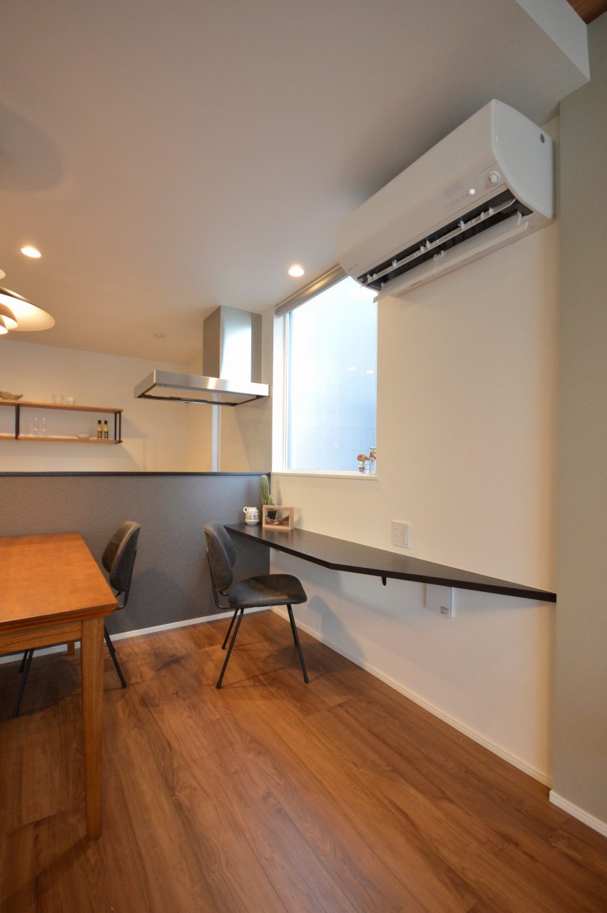 ダイニングのスタディーカウンターはダイニングの椅子を利用できるような位置に。専用の家具を増やさなくてもOK。